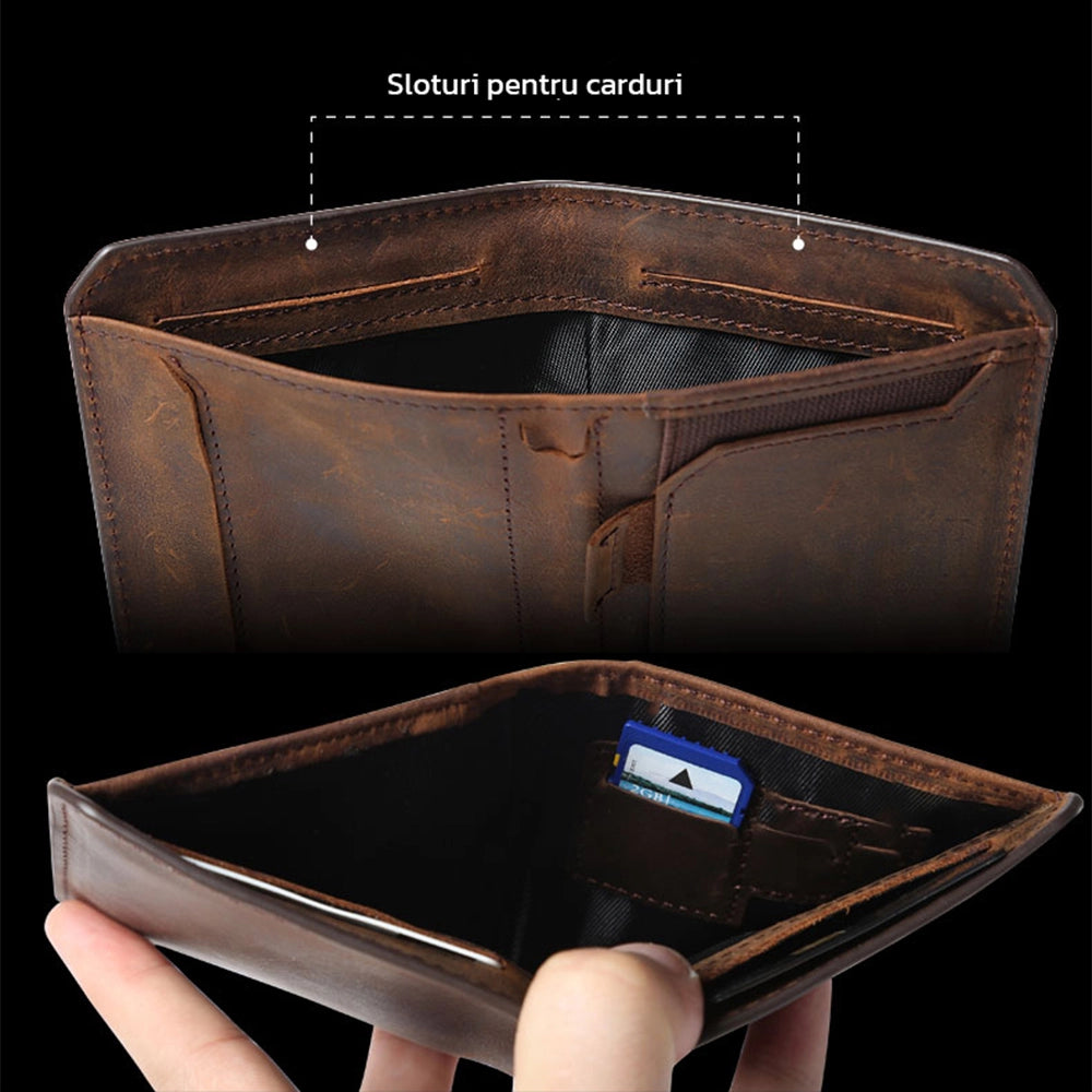 Portofel din piele naturala pentru barbati, cu Protectie RFID, VINTAGE STYLE, JOLAR. T1895
