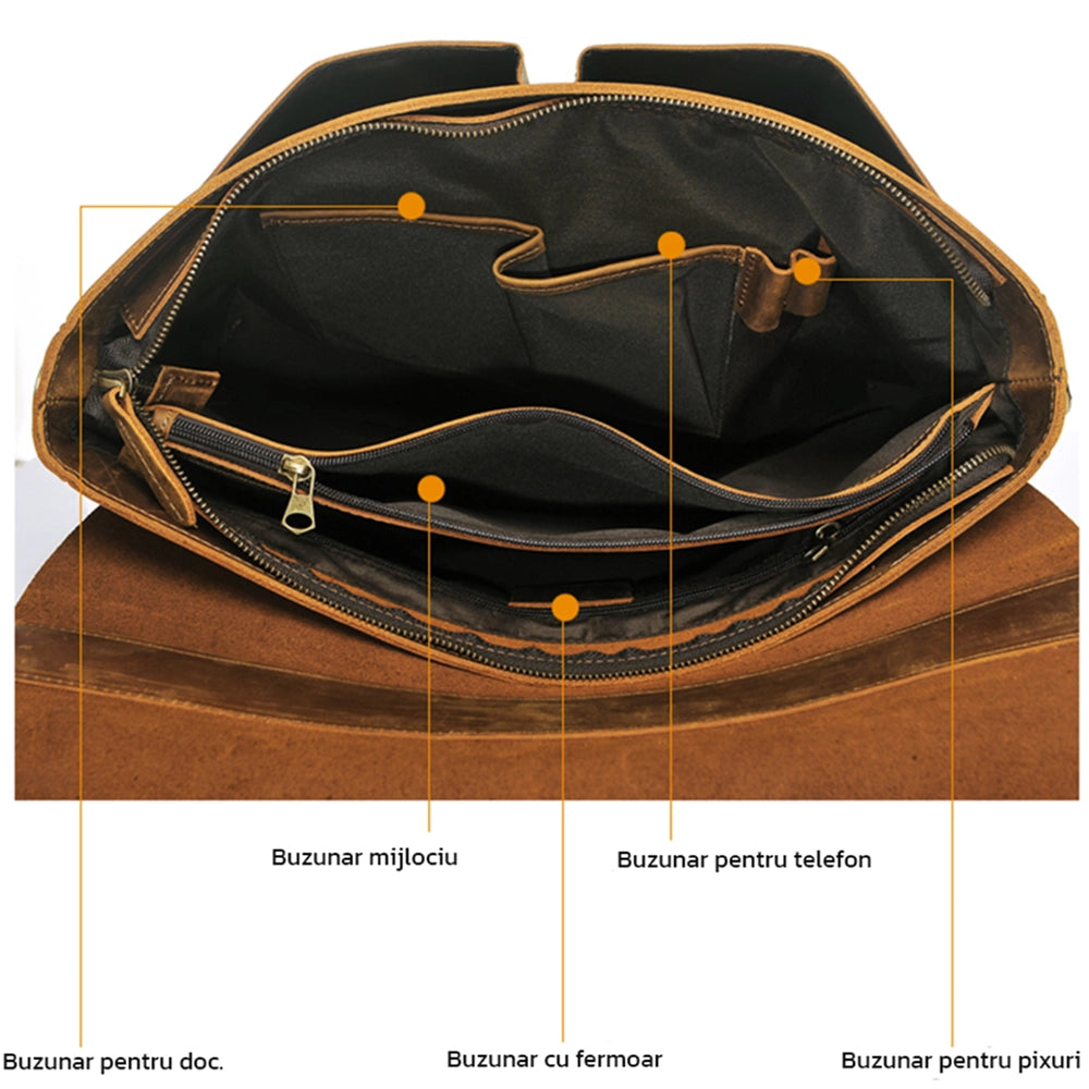 Geanta / Servieta pentru barbati, compartiment interior pentru laptop de 15.6 inch, VINTAGE STYLE, din piele naturala este rezistenta la apa, JOLAR. YD-8048