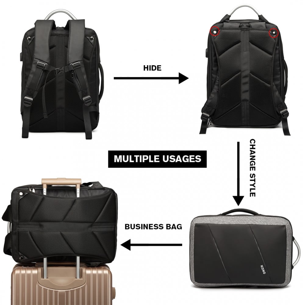 - Rucsac multifuncțional: rucsac, servietă sau geantă de voiaj.