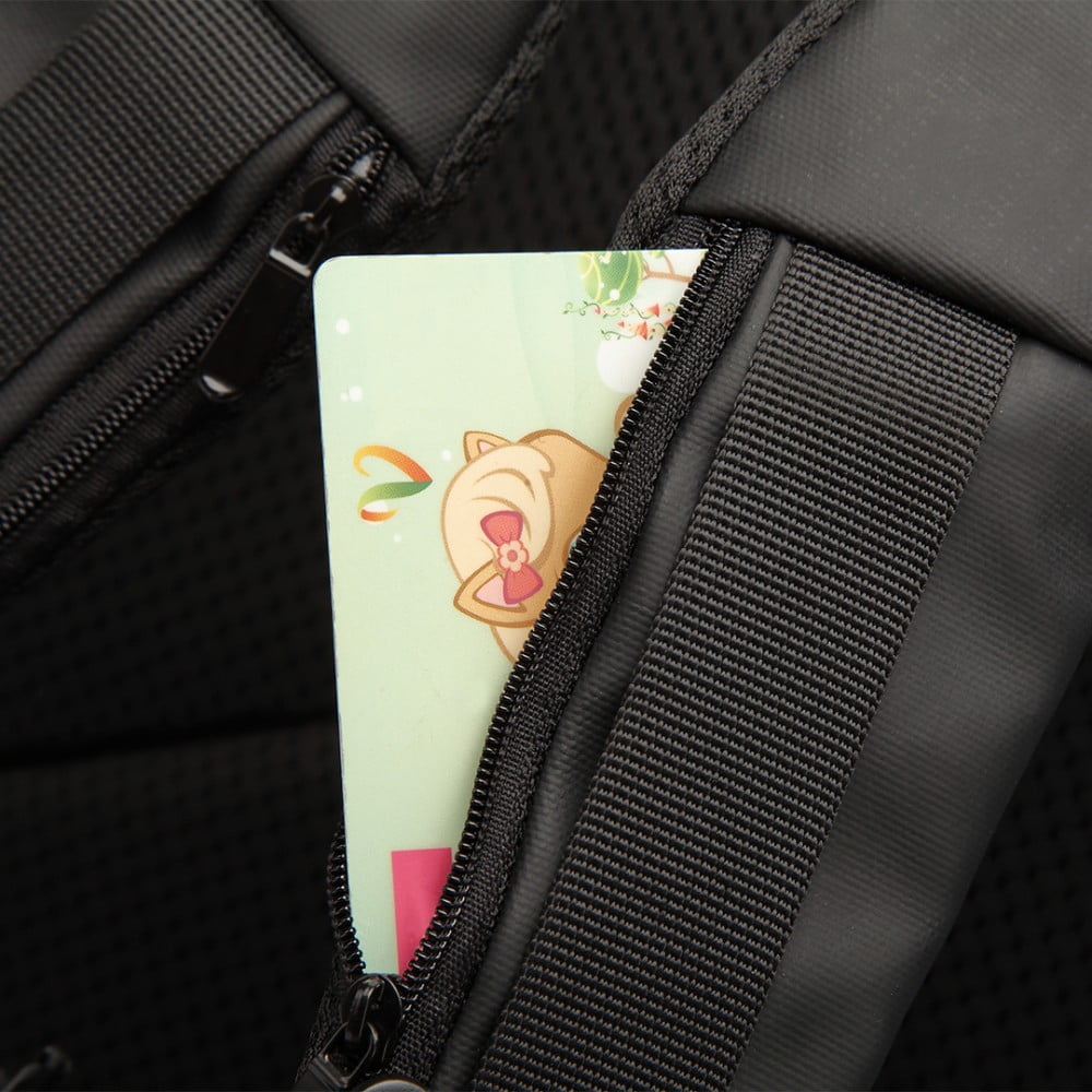 - Două mânere de prindere și curele de umăr căptușite (buzunar cu fermoar, portivit pentru carduri).