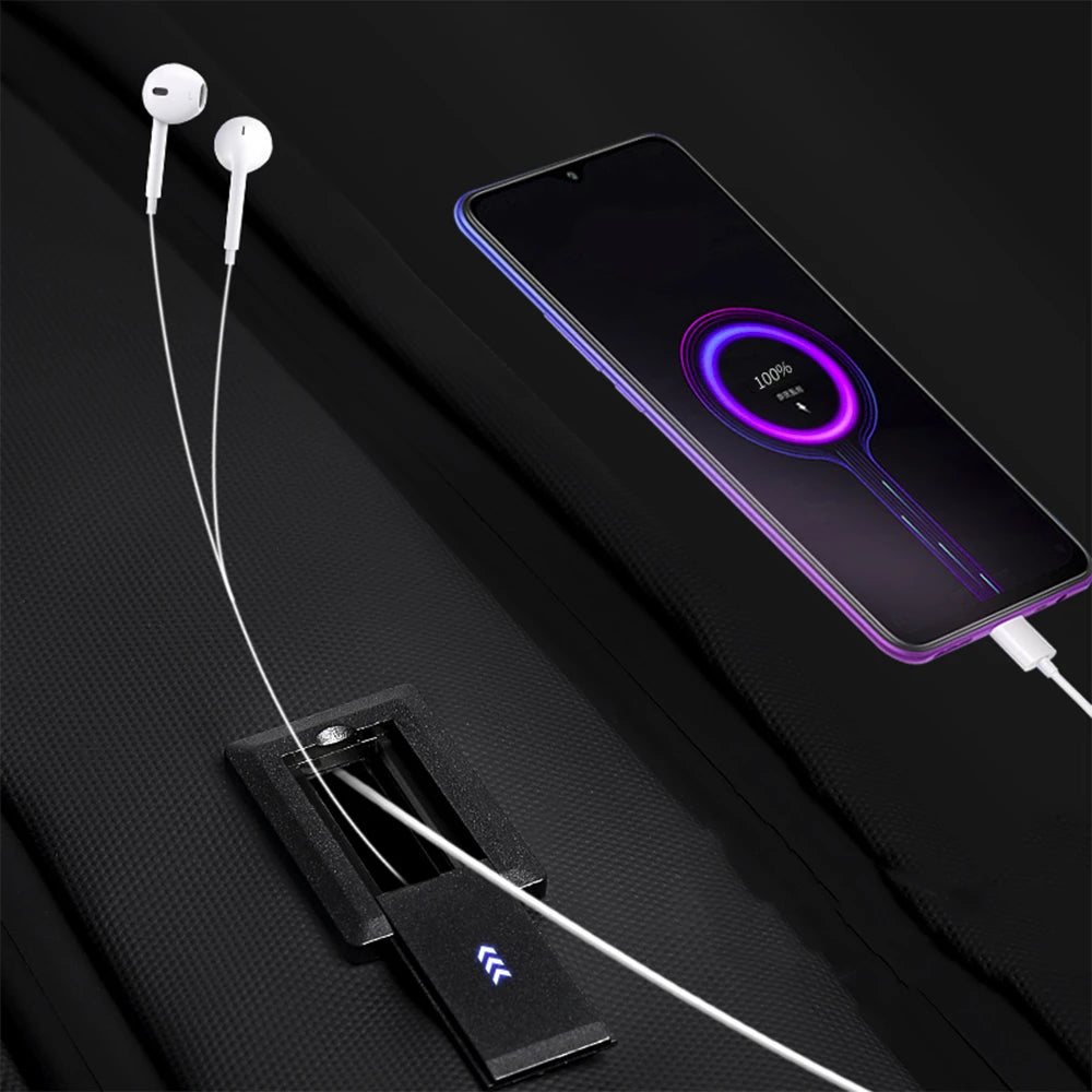 - Dotat cu gaura pentru cablu USB si un buzunar anti-furt pe spate, iti va tine lucrurile valoroase in siguranta.
