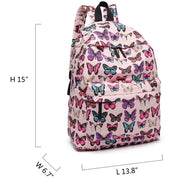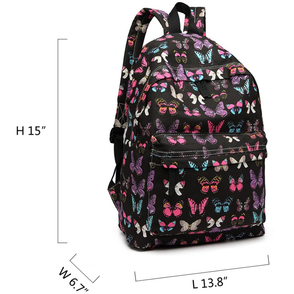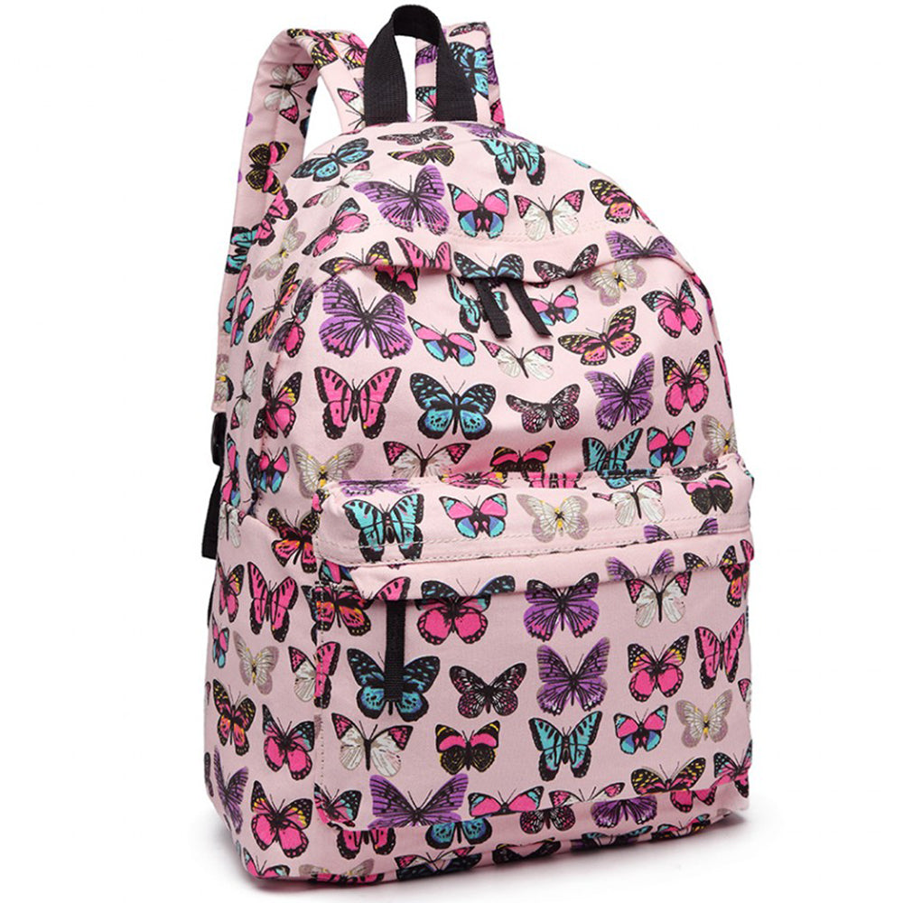 Rucsac casual pentru adolescenti, cu print fluturi, Miss Lulu E1401B