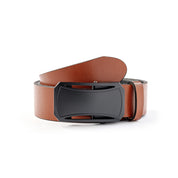 Produs autohton, din piele naturala, fara cusatura, cu catarama automata, de culoare negru mat si cu mecanism de actionare tip buton, avand 37 de trepte de ajustare, din 5 in 5 milimetri, pentru o reglare cat mai exacta si confortabila. La nevoie, catarama se poate detasa pentru a permite scurtarea curelei.