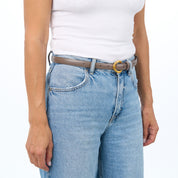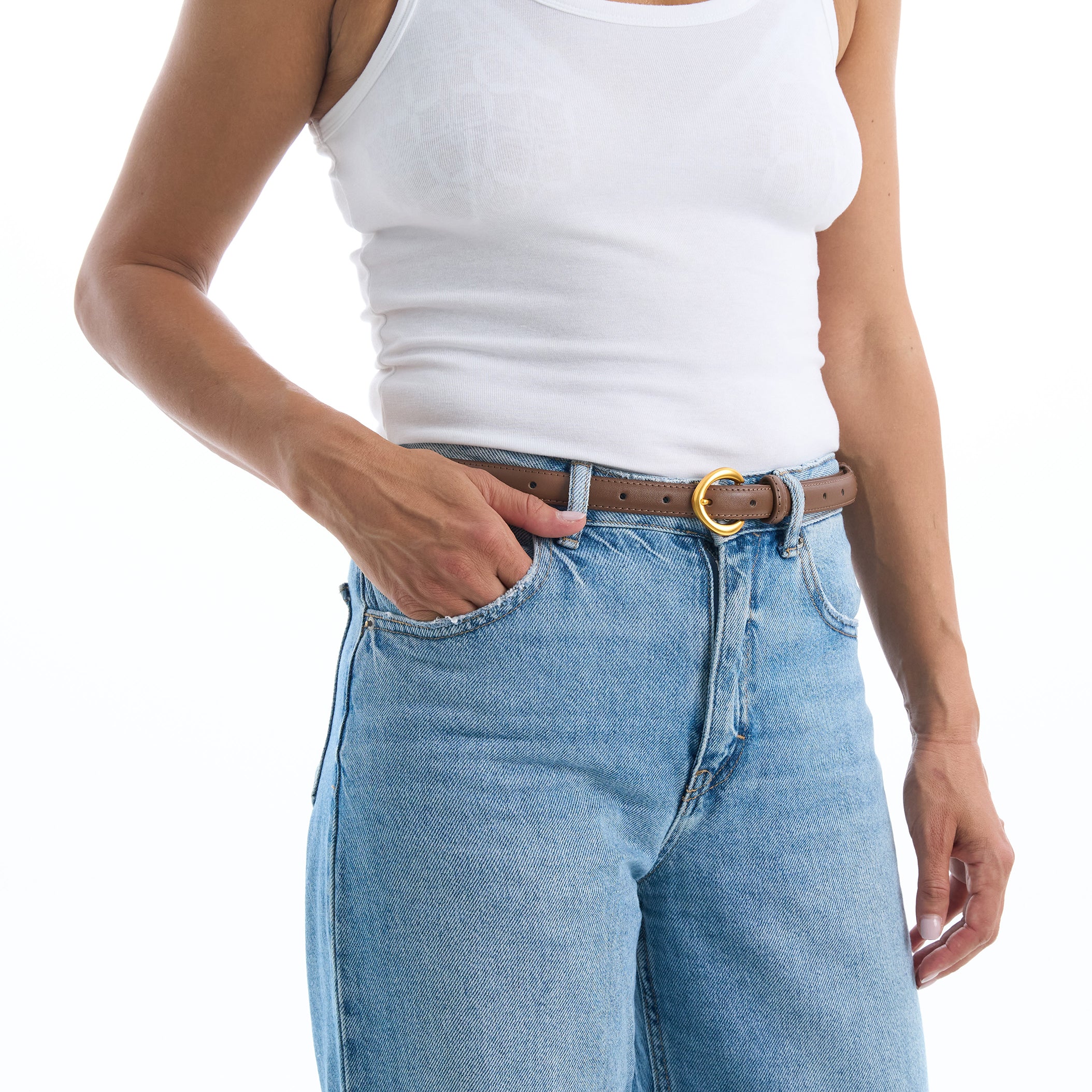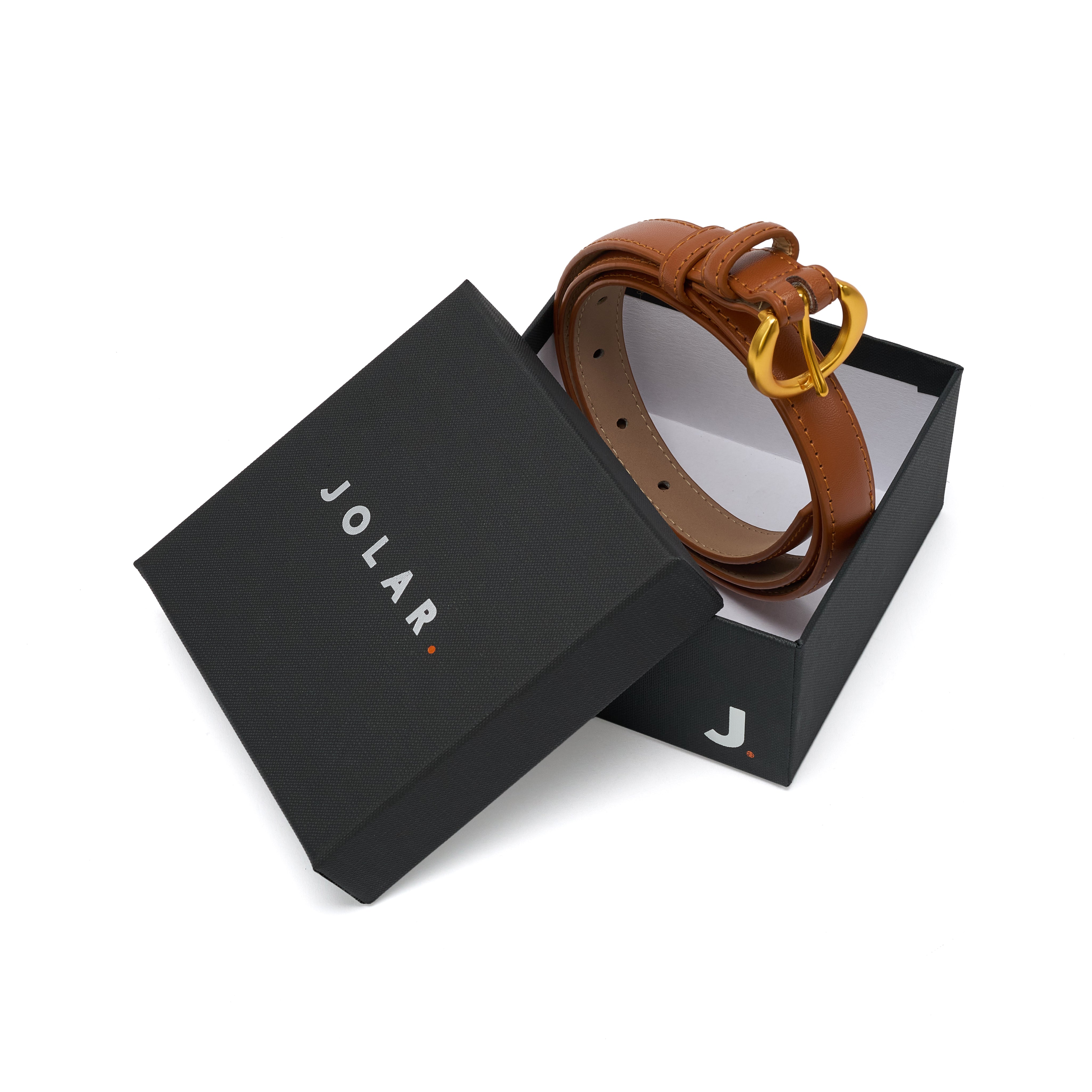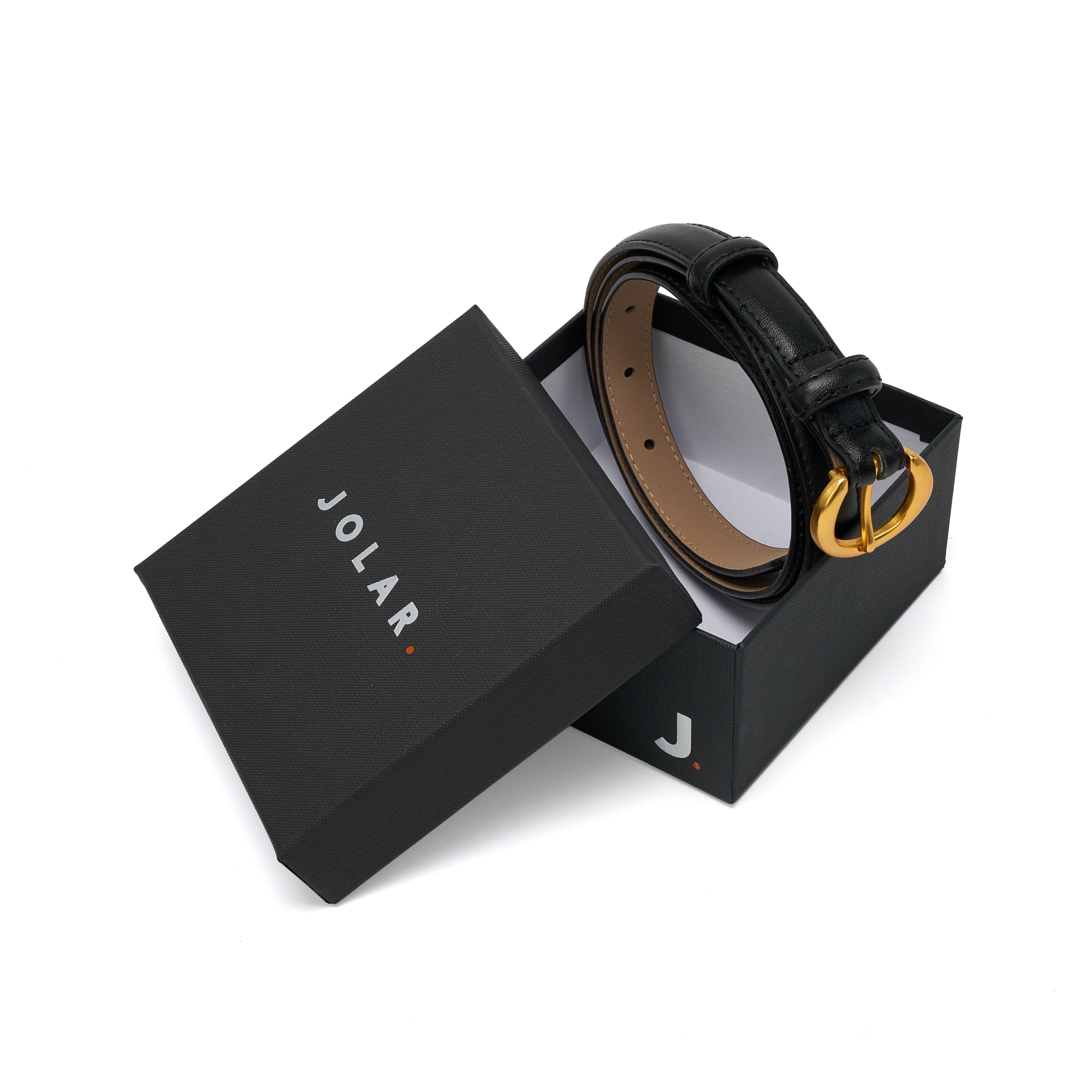 Curea pentru dama, JOLAR. subtire eleganta din piele naturala, catarama clasica aurie, BZ-45