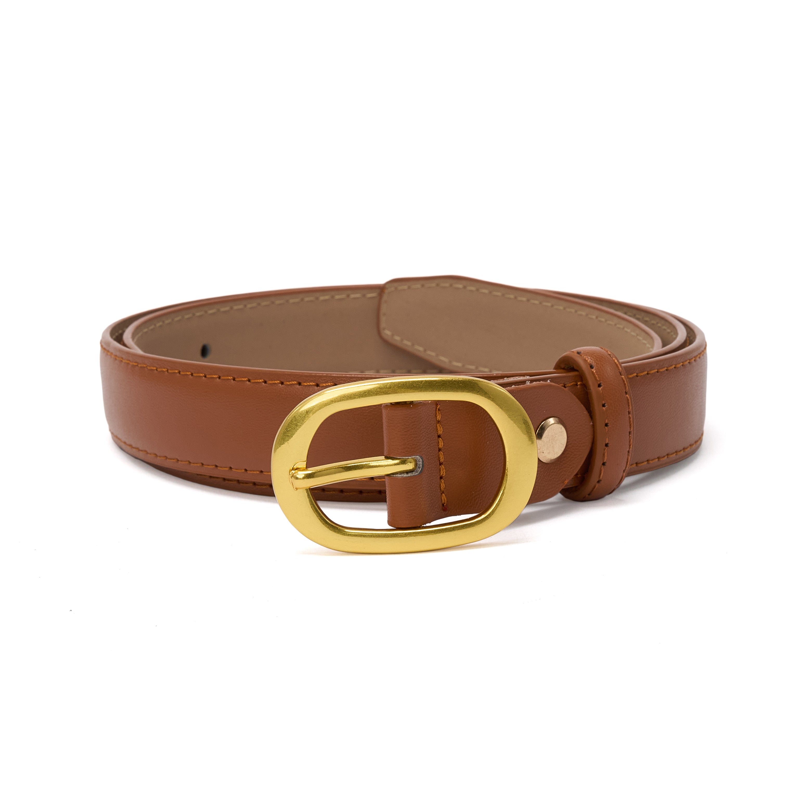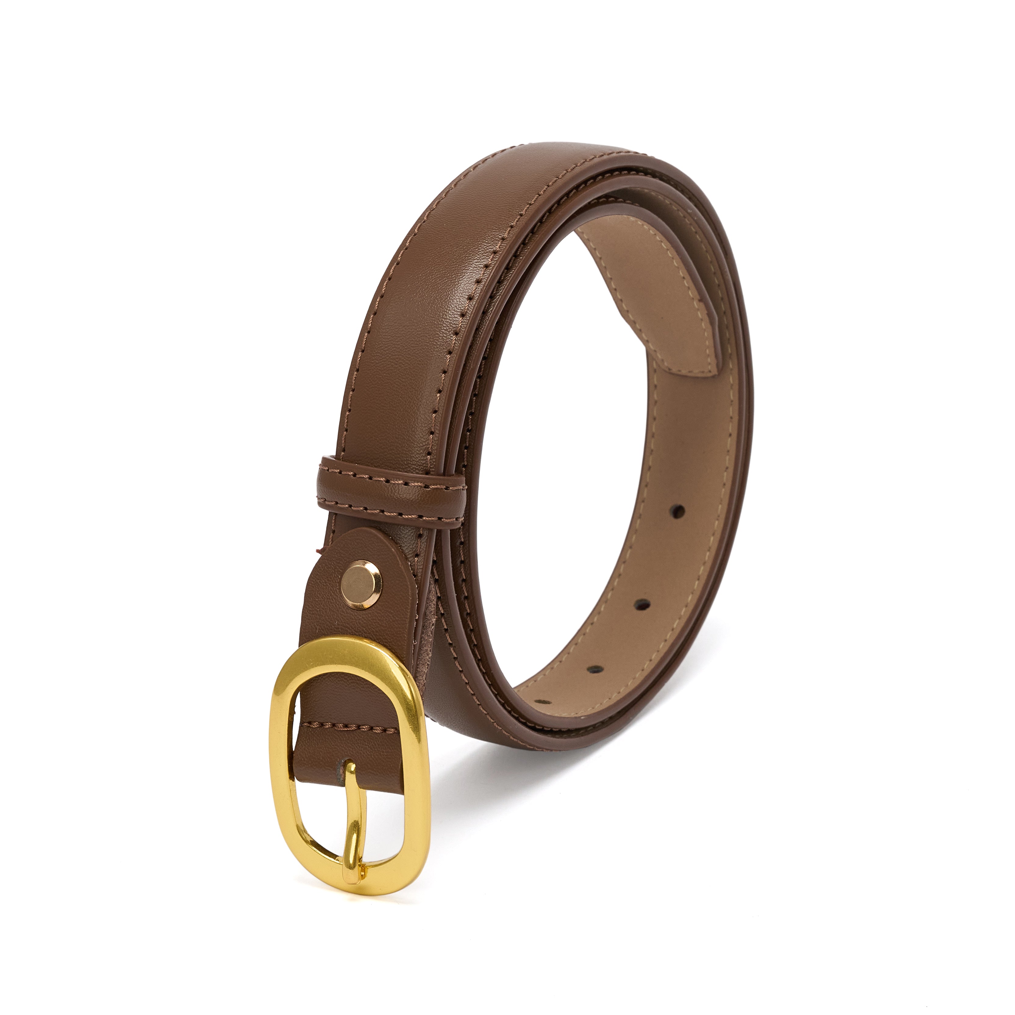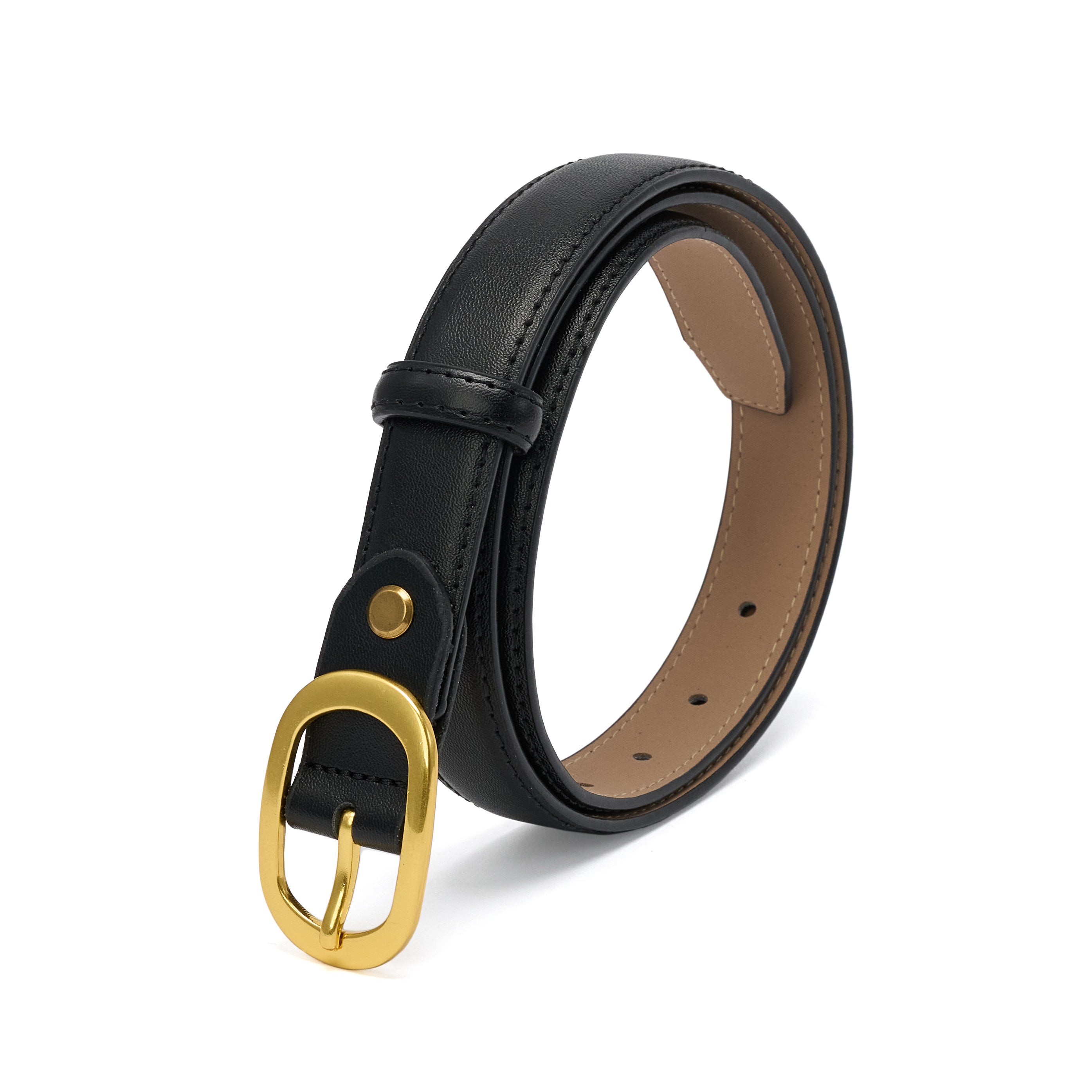 Curea pentru dama, JOLAR. eleganta din piele naturala cu cusuturi, catarama clasica aurie, BZ-47