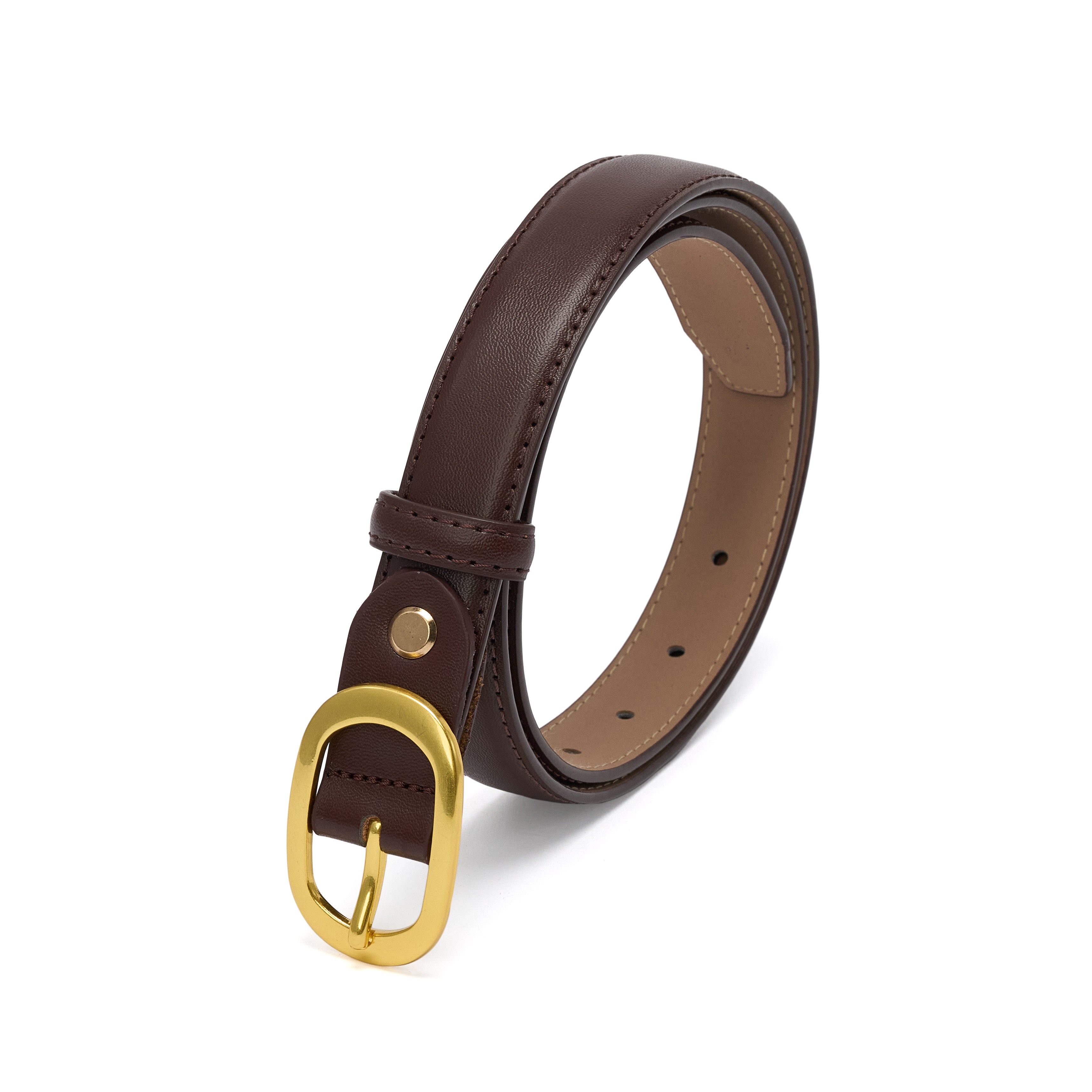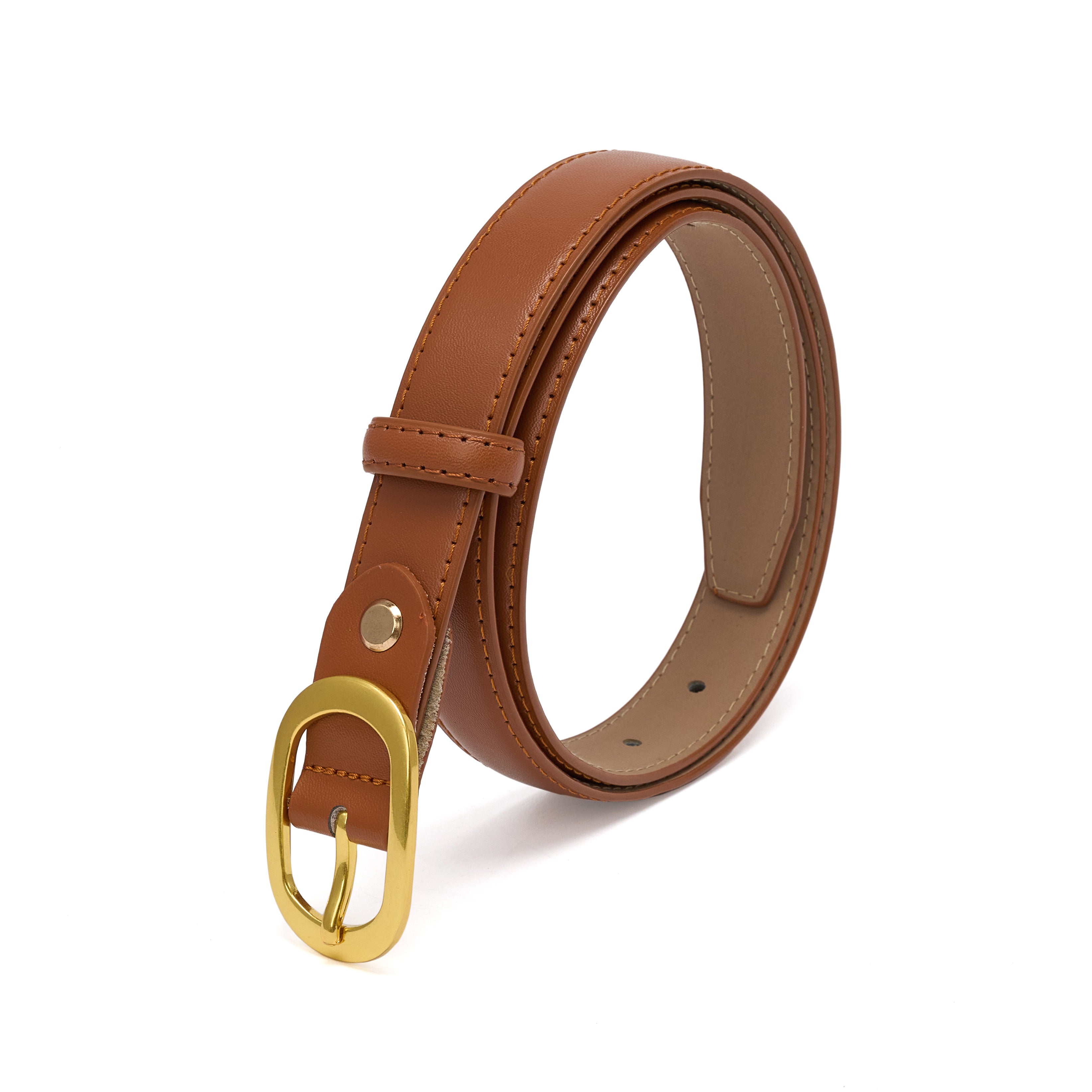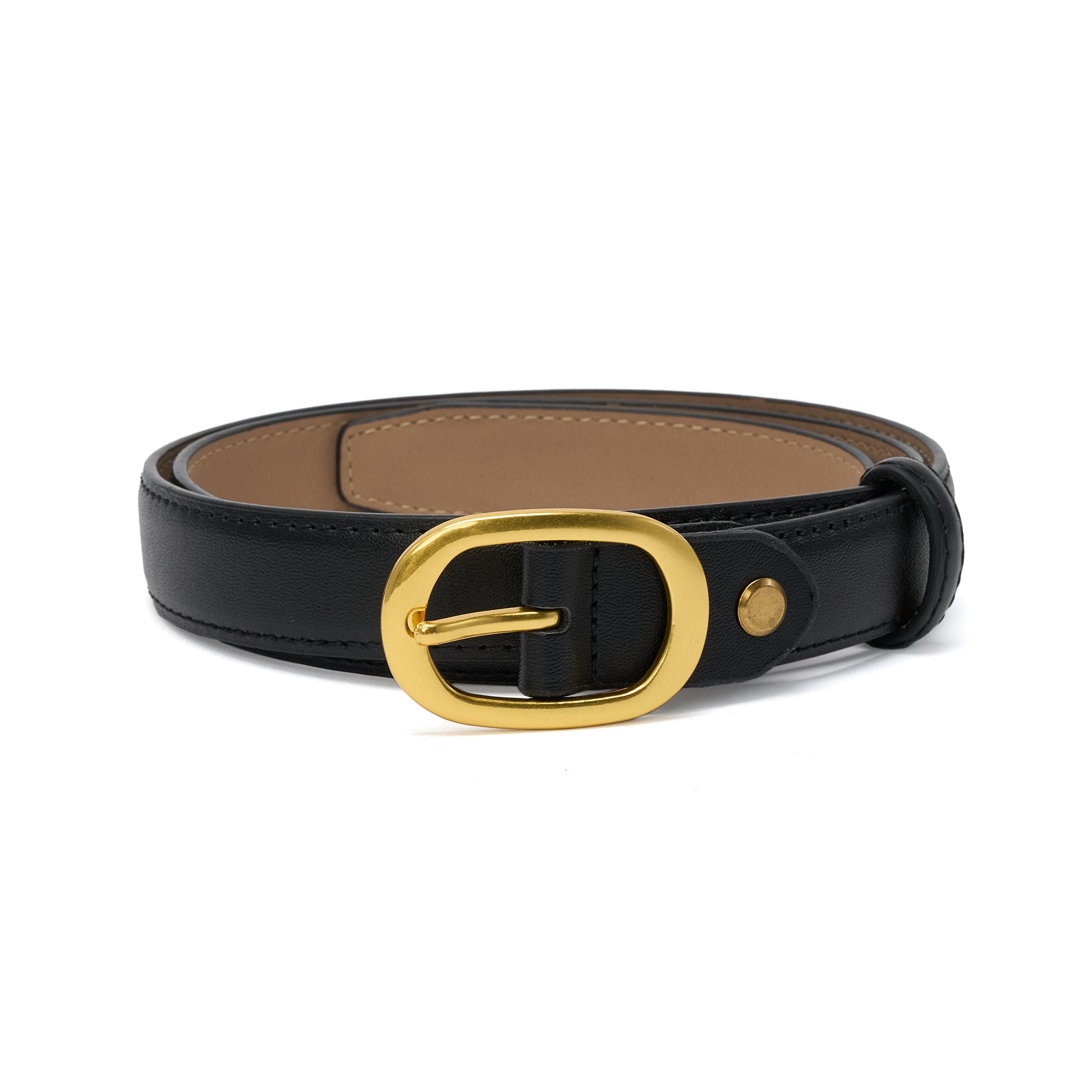 Curea pentru dama, JOLAR. eleganta din piele naturala cu cusuturi, catarama clasica aurie, BZ-47