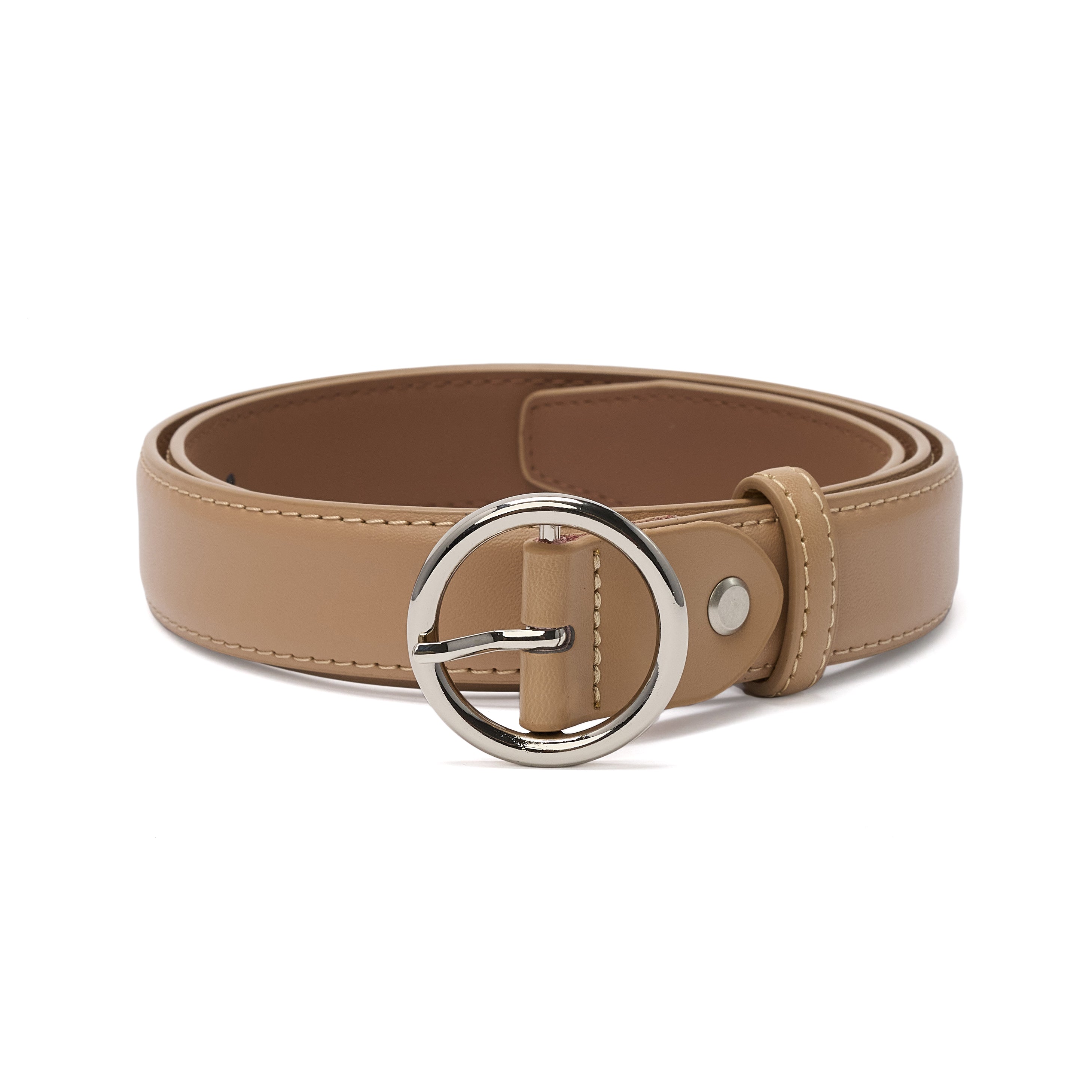 Curea pentru dama, din piele naturala, catarama gri rotunda, JOLAR. BZ-18