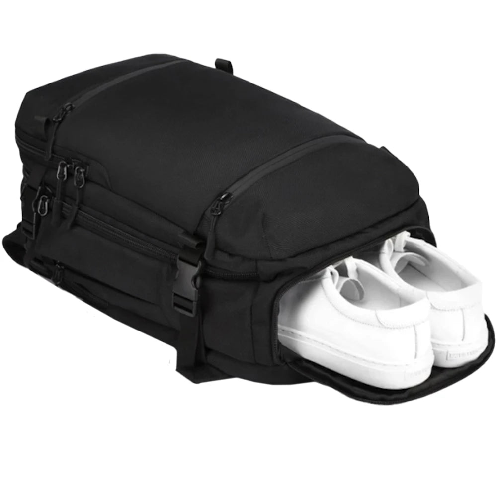 Partea minunata al acestui rucsac este faptul ca este extensibil si iti ofera posibilitatea sa ai extra spatiu cand ai nevoie. Se poate transforma intr-o geanta de calatorie cu capacitatea de 35 l avand extra 10 cm adancime in varianta extinsa. Are 3 compartimente, cel din spate este format din 2 buzunare deschise captusite cu materiale de protectie pentru laptop si tableta, asigurate cu banda sky, cel din mijloc este pentru obiecte mai voluminoase (haine, carti si altele), se deschide la 180 grade, si cel din fata are un organizator pentru agenda, telefon, casti si altele. Rucsacul este potrivit pentru laptop de 16 inch. Se inchide cu fermoar dublu. In partea frontala sint 2 buzunare inchise cu fermoar, fiecare fiind dotat cu organizatoare pentru obiecte mici, cum ar fi casti, chei, bricheta etc. In partile laterale sint doua buzunare un buzunar extensibil pt sticla de apa si un buzunar ce contine breloc pt chei si 3 buzunare deschise pentru pasaport, telefon sau alte obiecte. Rucsacul are un compartiment separat pentru incaltaminte.