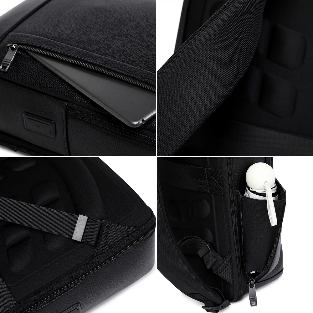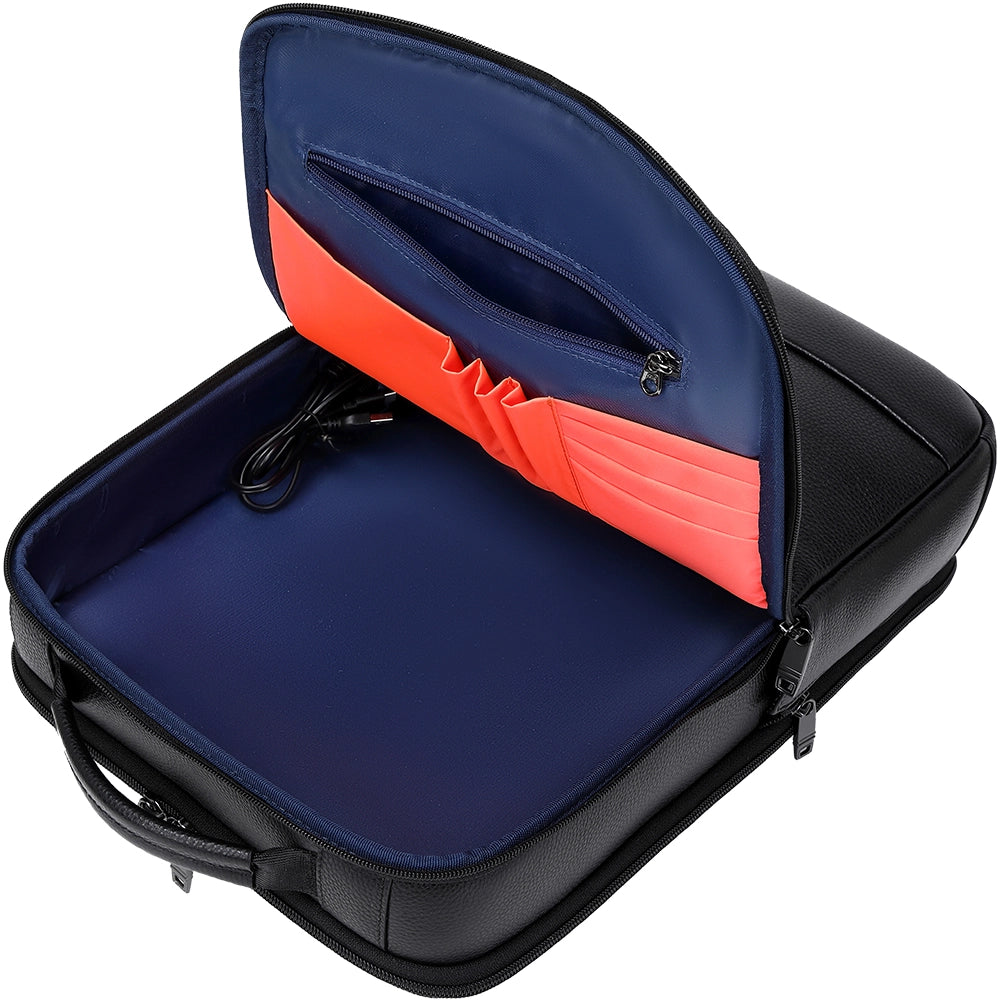 Rucsac smart pentru barbati, compartiment separat pentru laptop 15.6 inch, cu port USB TYPE-C, din piele originala este rezistent la apa, cu fixare de valiza JOLAR. GP02371