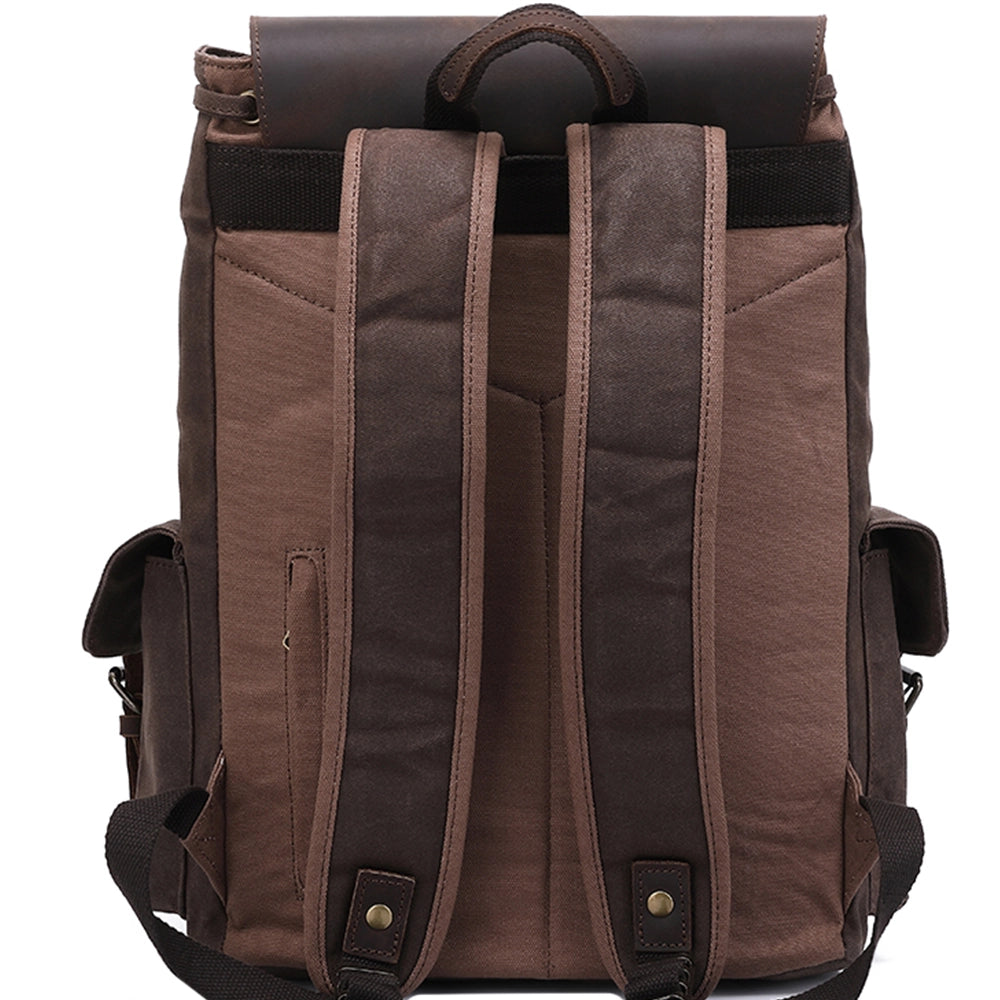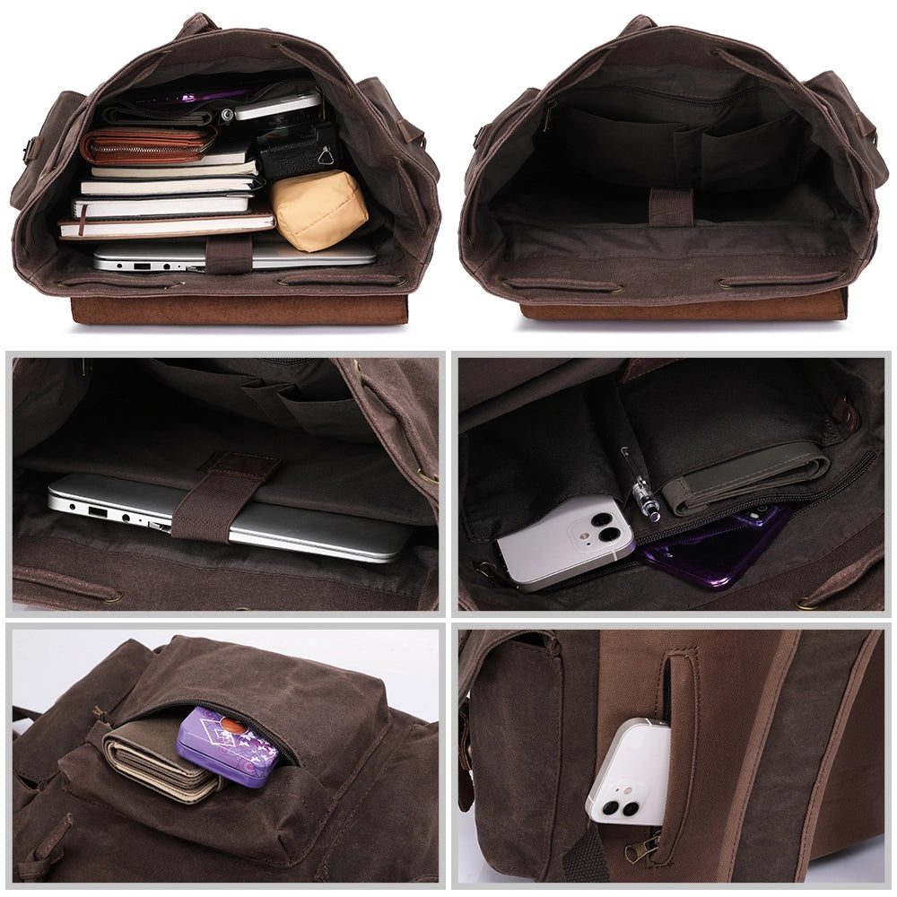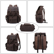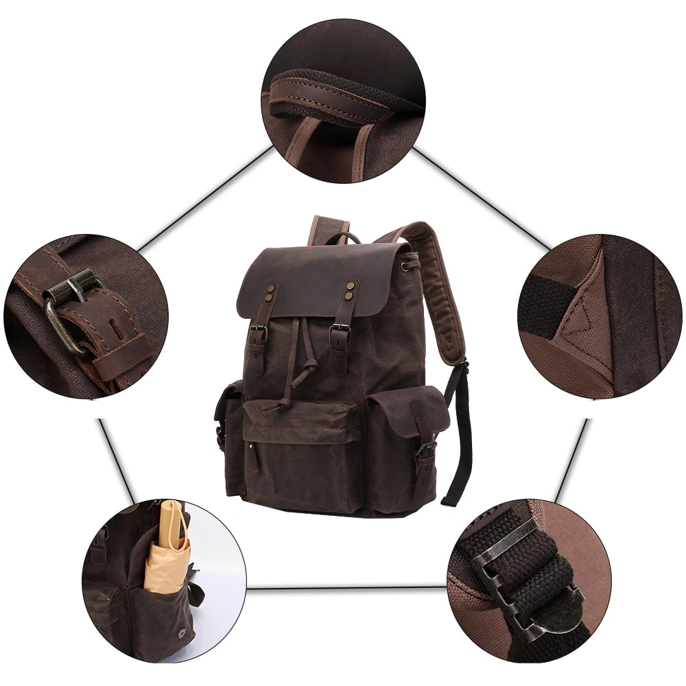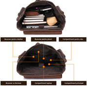 Rucsac din canvas, pentru calatorii, drumetii, compartiment laptop, aspect vintage, stil retro, rezistent la apa, detalii din piele, buzunar antifurt, unisex JOLAR. YD-7950