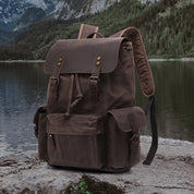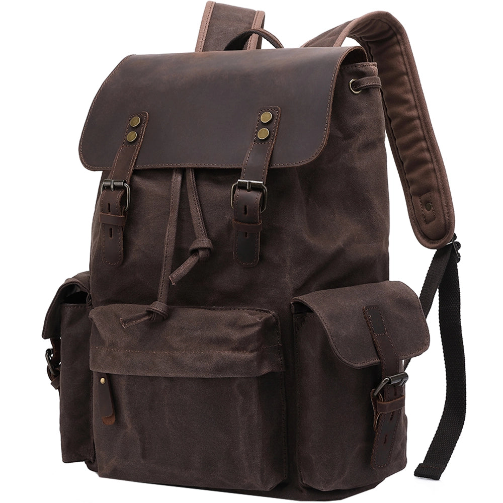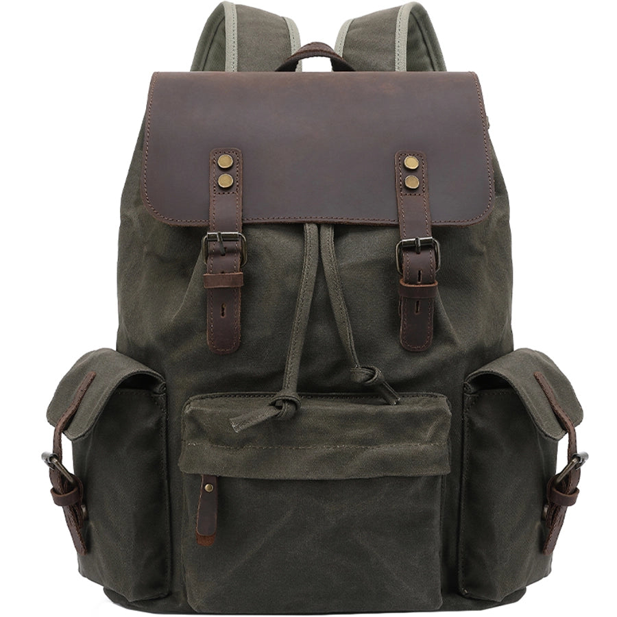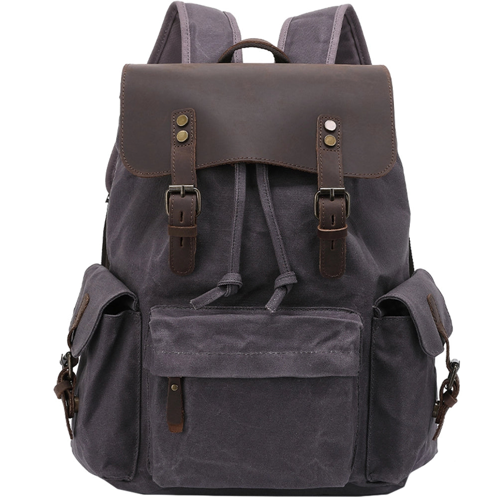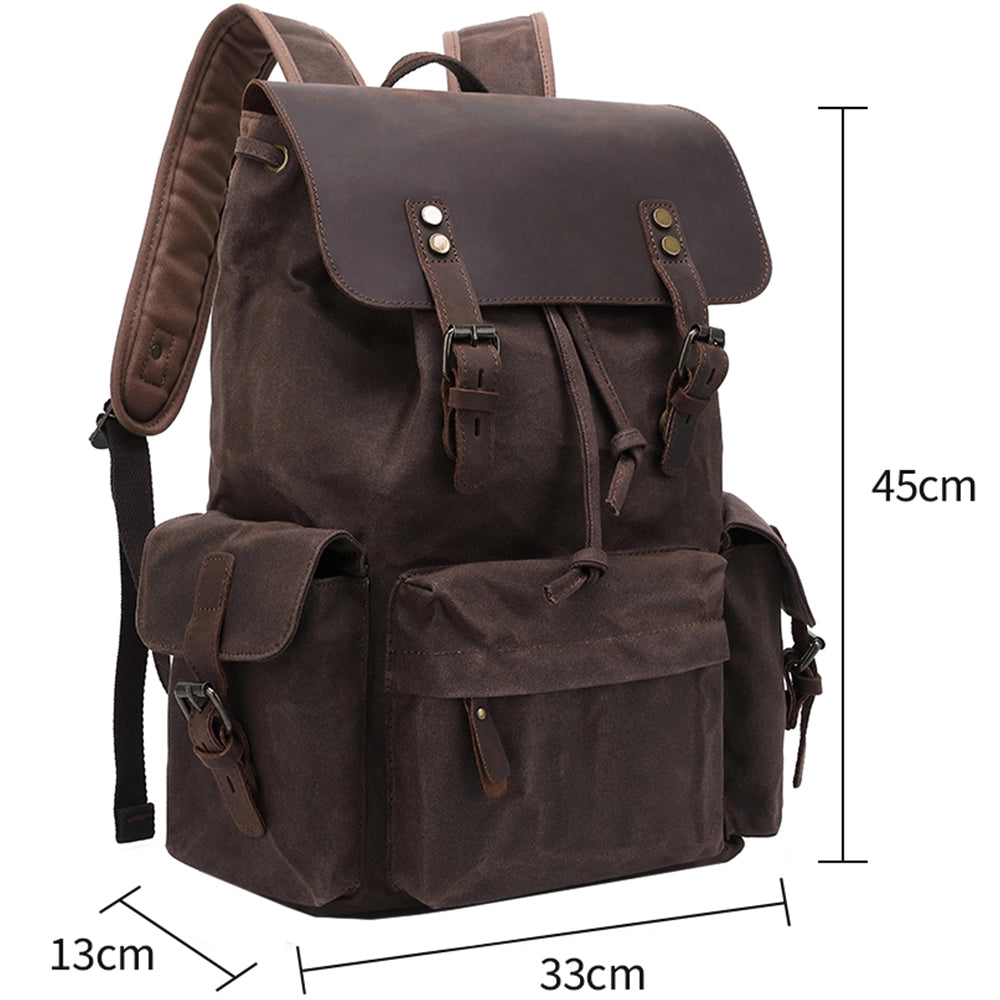 Rucsac din canvas, pentru calatorii, drumetii, compartiment laptop, aspect vintage, stil retro, rezistent la apa, detalii din piele, buzunar antifurt, unisex JOLAR. YD-7950
