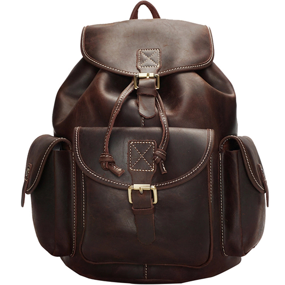 Rucsac din piele naturala, potrivit pentru calatorii, drumetii, scoala, universitate, activitati zi de zi, aspect vintage, stil retro, unisex, JOLAR., YD-8088