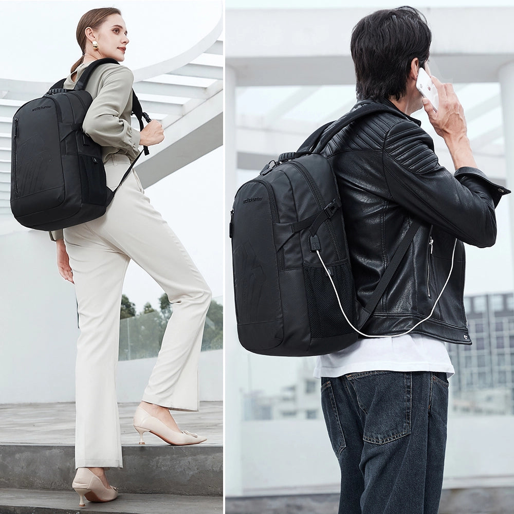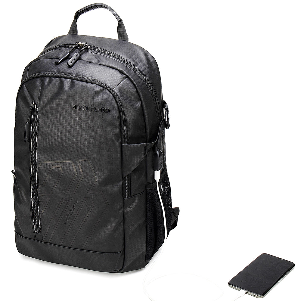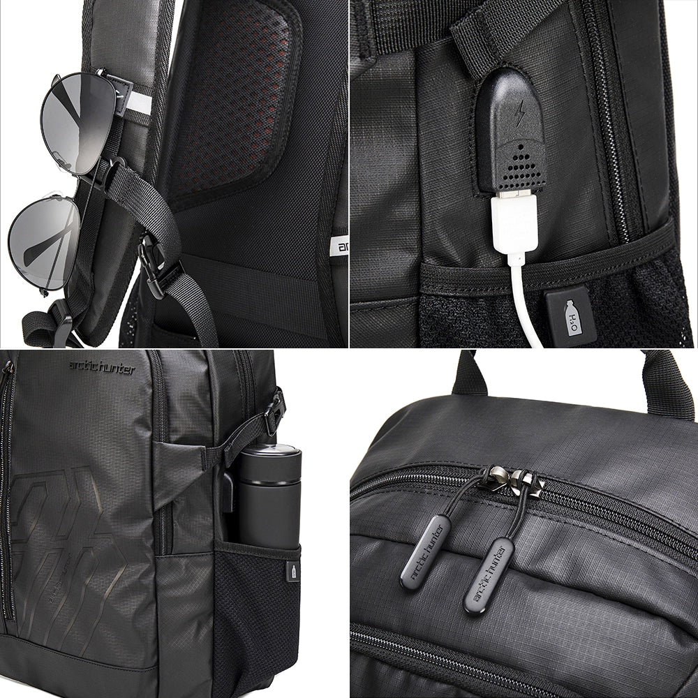 Rucsac unisex pentru laptop de 15,6 inch, rucsac sport, cu port USB, din poliester este rezistent la apa, cu fixare de valiza, Arctic Hunter B00387