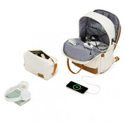 Acest rucsac este fabricat din materiale hidrofuge pentru a va mentine lucrurile uscate si protejate. Cu numeroasele sale compartimente de depozitare, rucsacul este potrivit pentru a organiza o varietate de lucruri importante. Compartimentul din fata ofera spatiu amplu cu doua buzunare, doua suporturi pentru stilouri, un buzunar plasa cu fermoar si un buzunar suplimentar cu fermoar. Un compartiment lateral dedicat gazduieste o banca de alimentare care mentine dispozitivele incarcate din mers prin porturile USB si Type-C incorporate. Compartimentul din spate serveste ca o geanta sigura pentru laptop pentru dispozitive de pana la 15,6 inchi, ceea ce il face ideal pentru naveta zilnica sau calatoriile mai lungi.