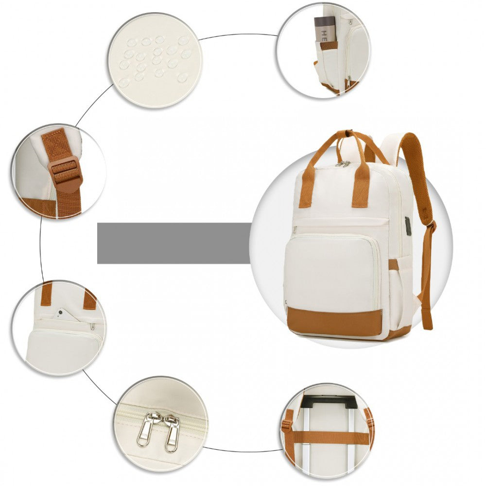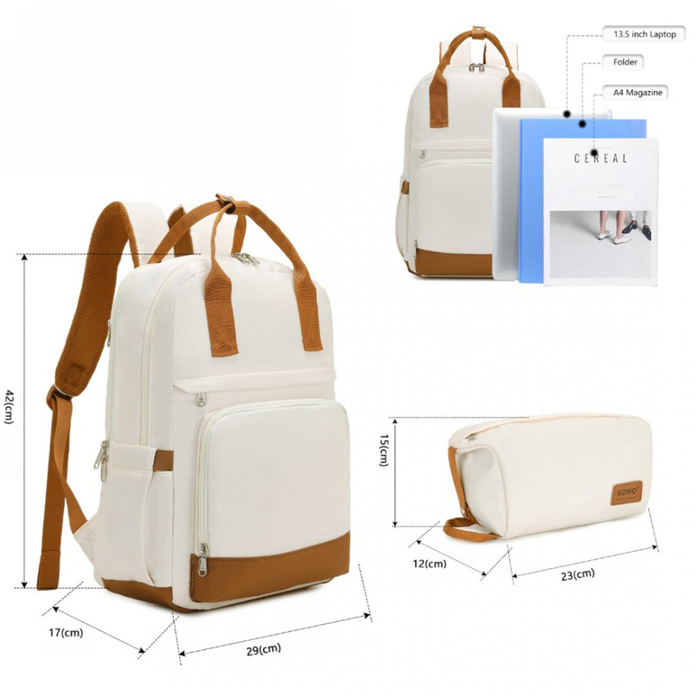 Exista, de asemenea, doua buzunare cu fermoar in partea din fata a rucsacului pentru acces rapid la articole. Un buzunar ascuns cu fermoar pe spate ofera siguranta suplimentara si este perfect pentru depozitarea obiectelor de valoare. Geanta valiza, cu care rucsacul poate fi atasat in siguranta de bagajele rulante, asigura si mai mult confort, iar bretelele de umar captusite asigura confort chiar si atunci cand sunt incarcate complet. Curelele de umar captusite asigura un nivel ridicat de confort atunci cand sunt incarcate complet. Un compartiment mic suplimentar cu fermoar este potrivit pentru depozitarea articolelor de papetarie, a produselor cosmetice sau a cablurilor de incarcare, oferind o solutie practica pentru organizarea obiectelor mici. Acest rucsac Kono nu este doar o alegere practica, ci si o alegere eleganta. Designul sau elegant si accentele subtile de culoare il fac o alegere fantastica atat pentru calatorii de agrement, cat si pentru medii profesionale.