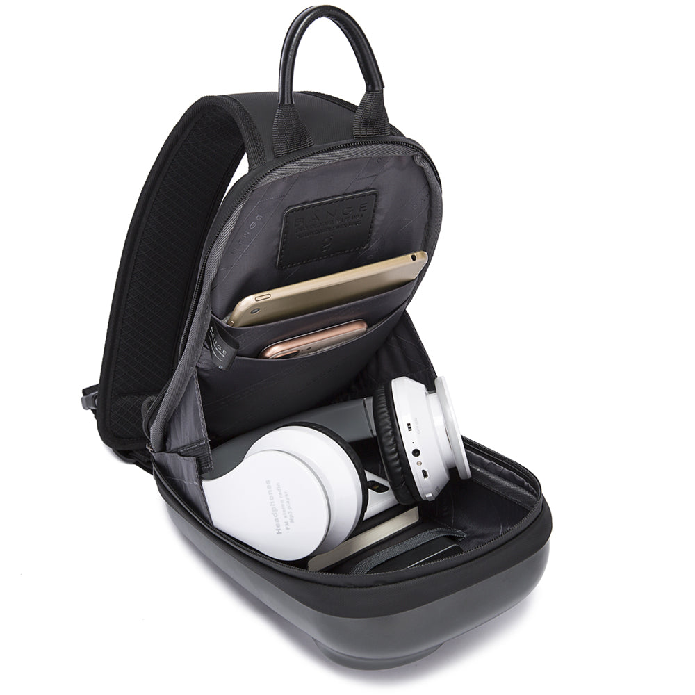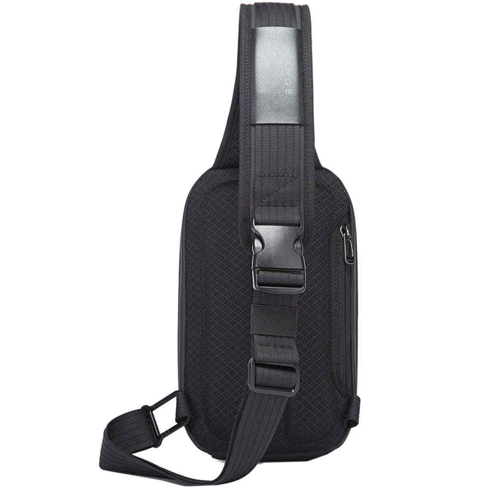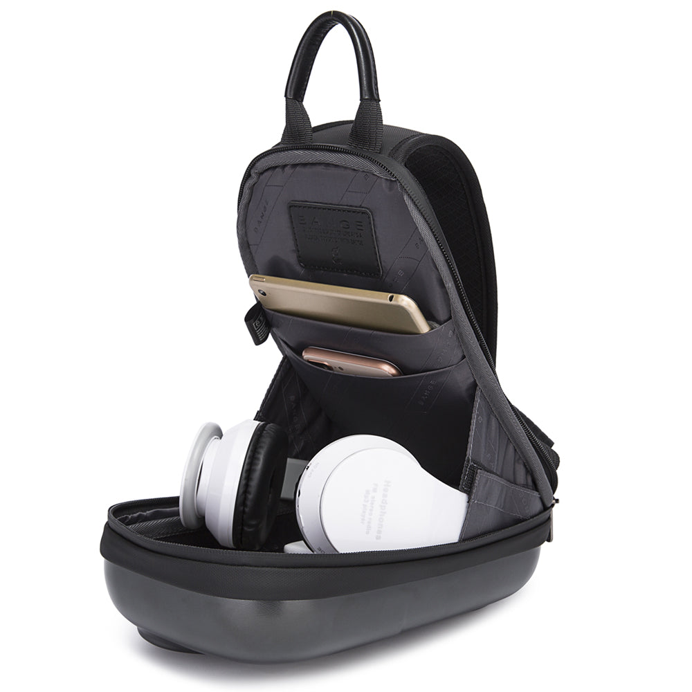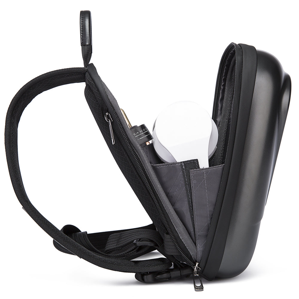 Rucsac crossbody unisex, carcasa tare HARDSELL, din poliester rezistent la apa, bareta cu trident, spate moale cu buzunar antifurt, BANGE BG7353