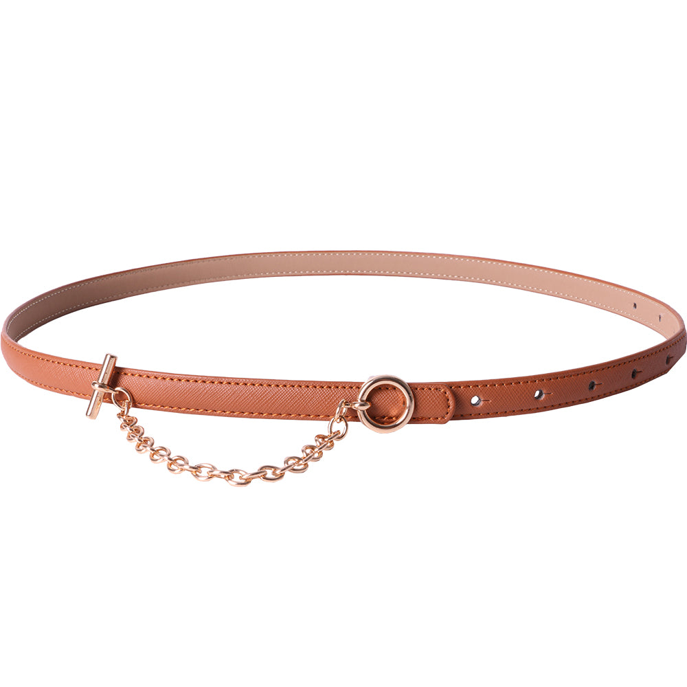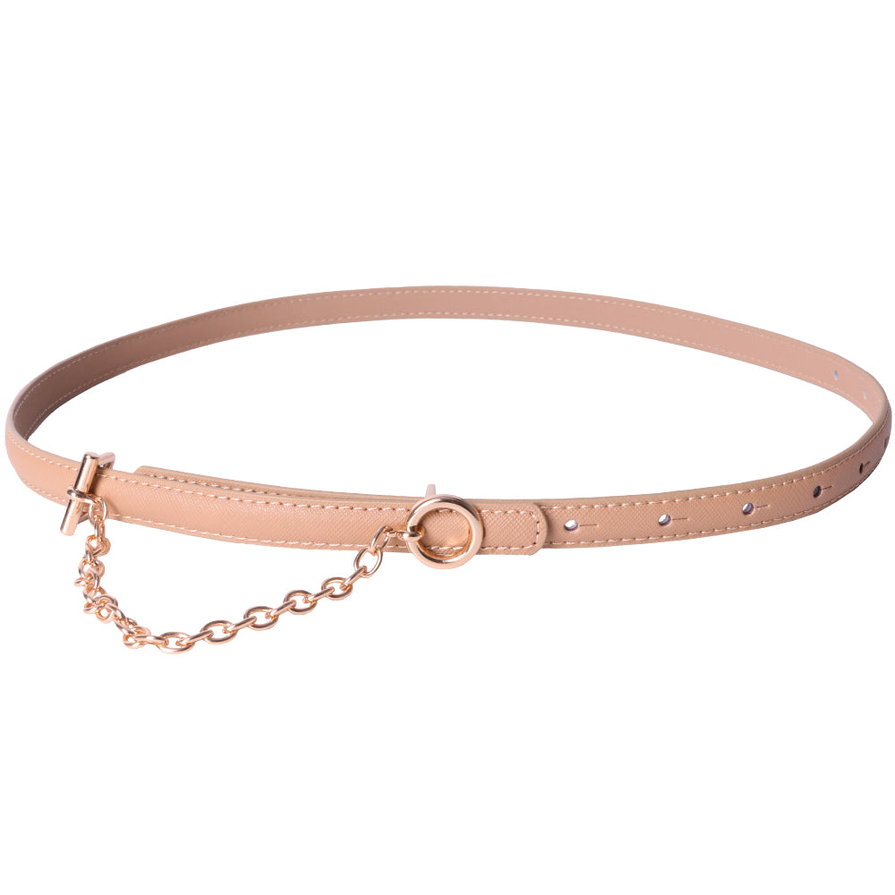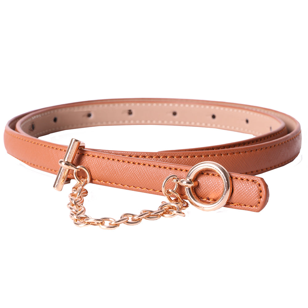 Curea pentru dama, model subtire, piele naturala, lant decorativ, BZ-14-2