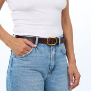 Curea pentru dama, JOLAR. eleganta din piele naturala, catarama clasica aurie, BZ-48