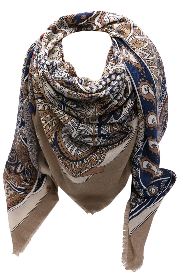 Esarfa patrata pentru dama, eleganta, subtire cu imprimeu oriental, din viscoza, ROCS B021
