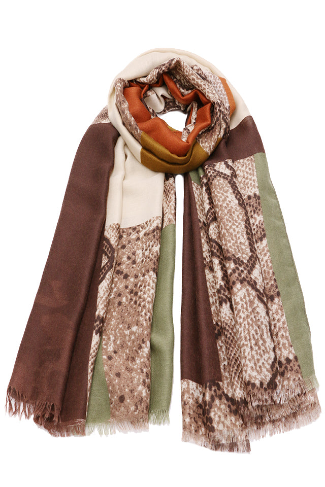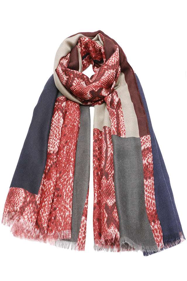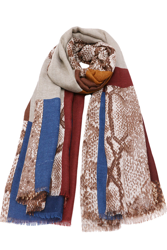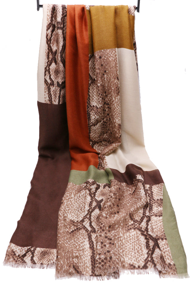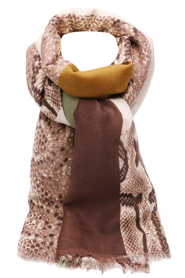 Esarfa pentru dama, cu imprimeu piele de sarpe, din viscoza, sezon toamna iarna, ROCS B018