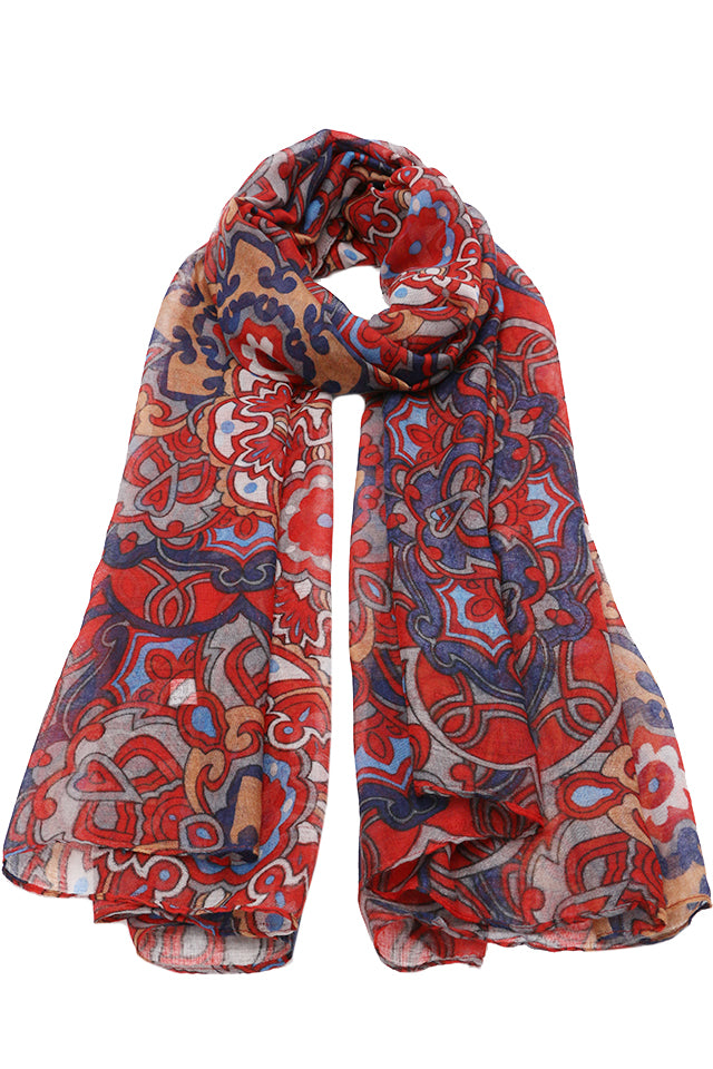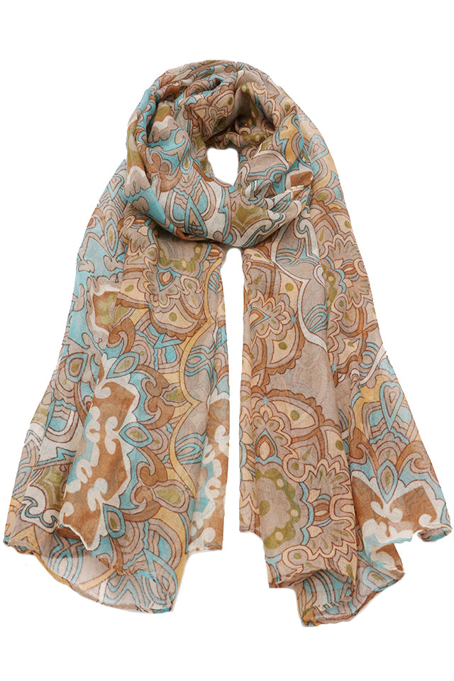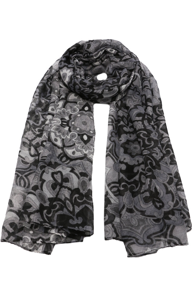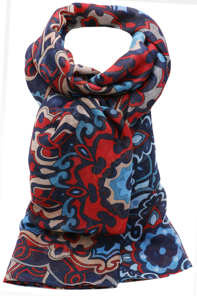 Esarfa pentru dama, eleganta din poliester, cu imprimeu flori orientale, sezon rece ROCS B066