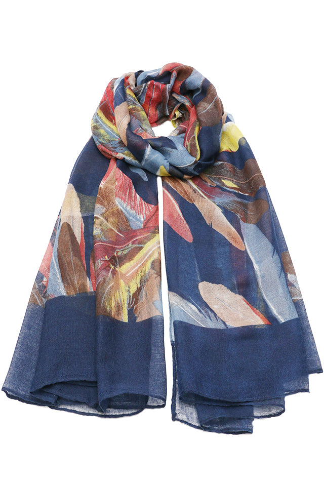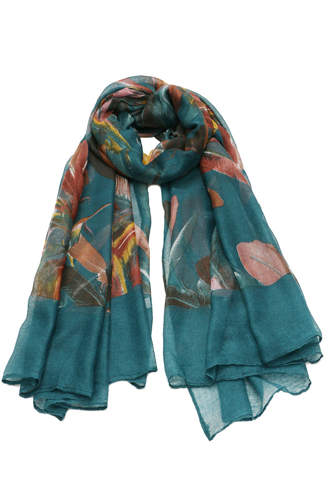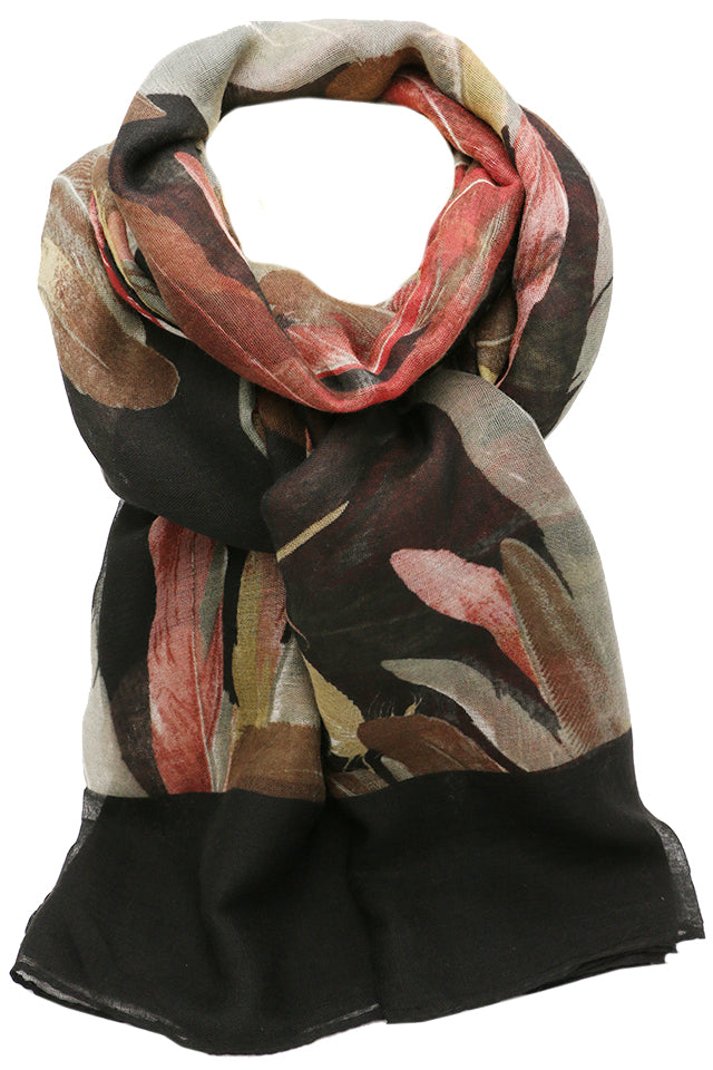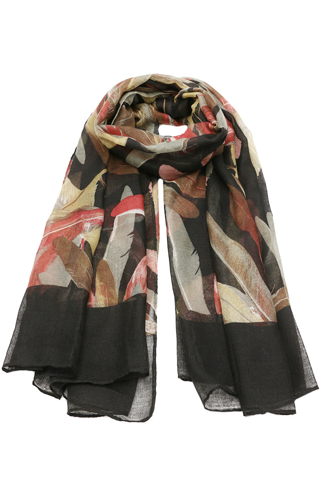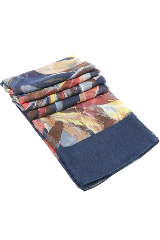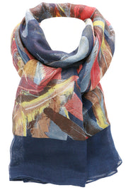 Esarfa pentru dama, casual eleganta din poliester, cu imprimeu colorat pene, sezon rece ROCS B064