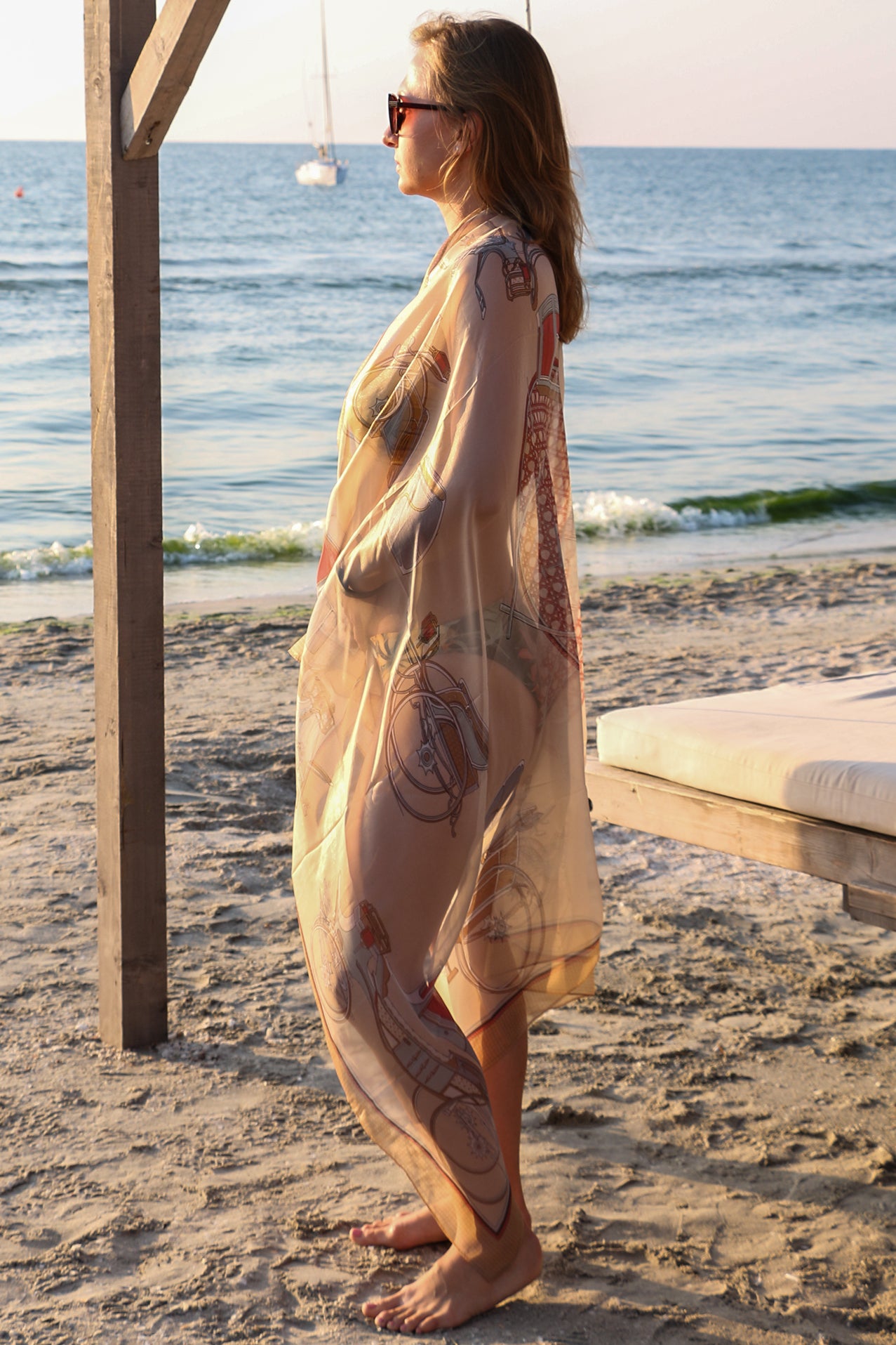 Esarfa pentru dama, stil casual, supra dimensionata, imitatie matase, cu Imprimeu Masini Retro, Hilldi NK04
