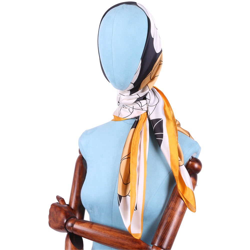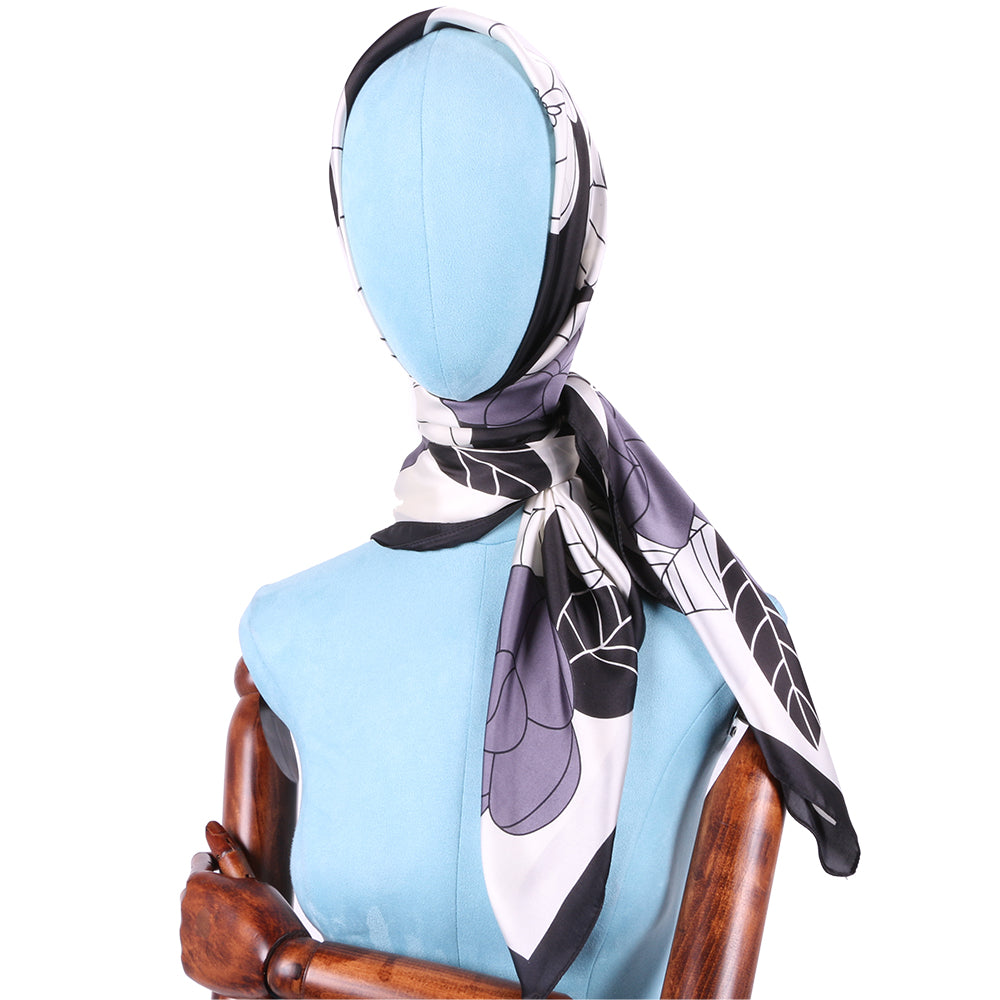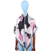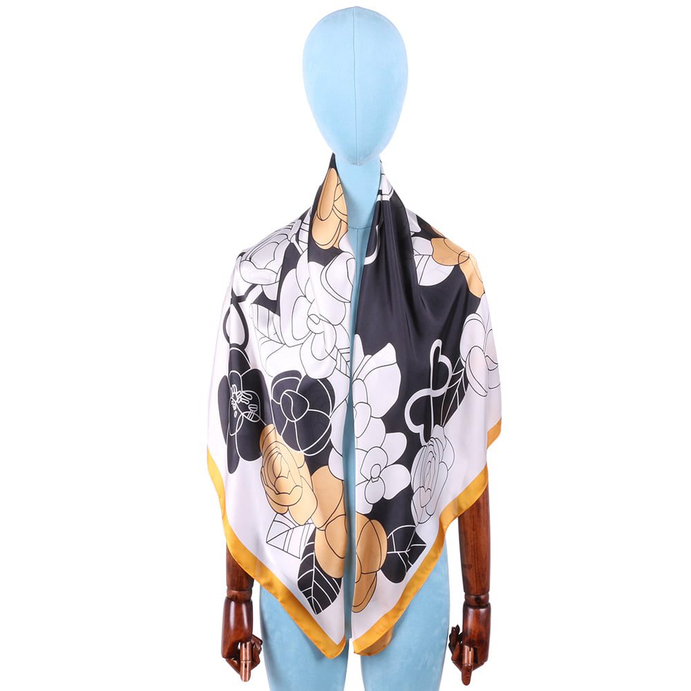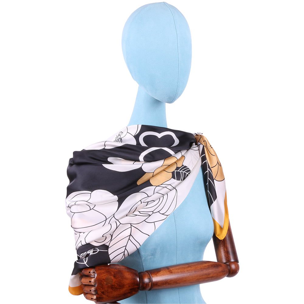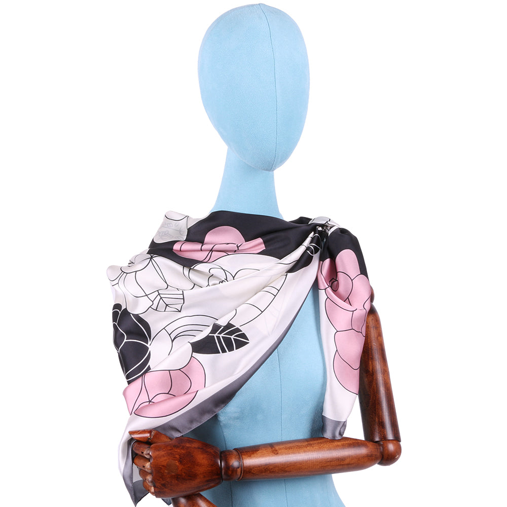Esarfa pentru dama, stil casual elegant imitatie matase, forma patrata 110 x 110 cm, imprimeu flori mari, ROCS SK15