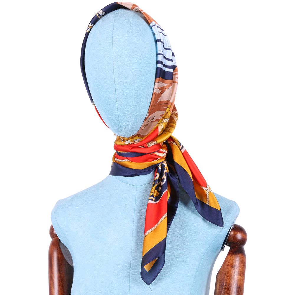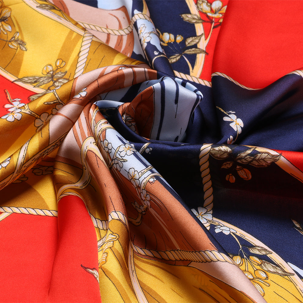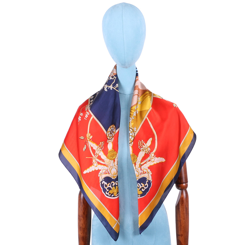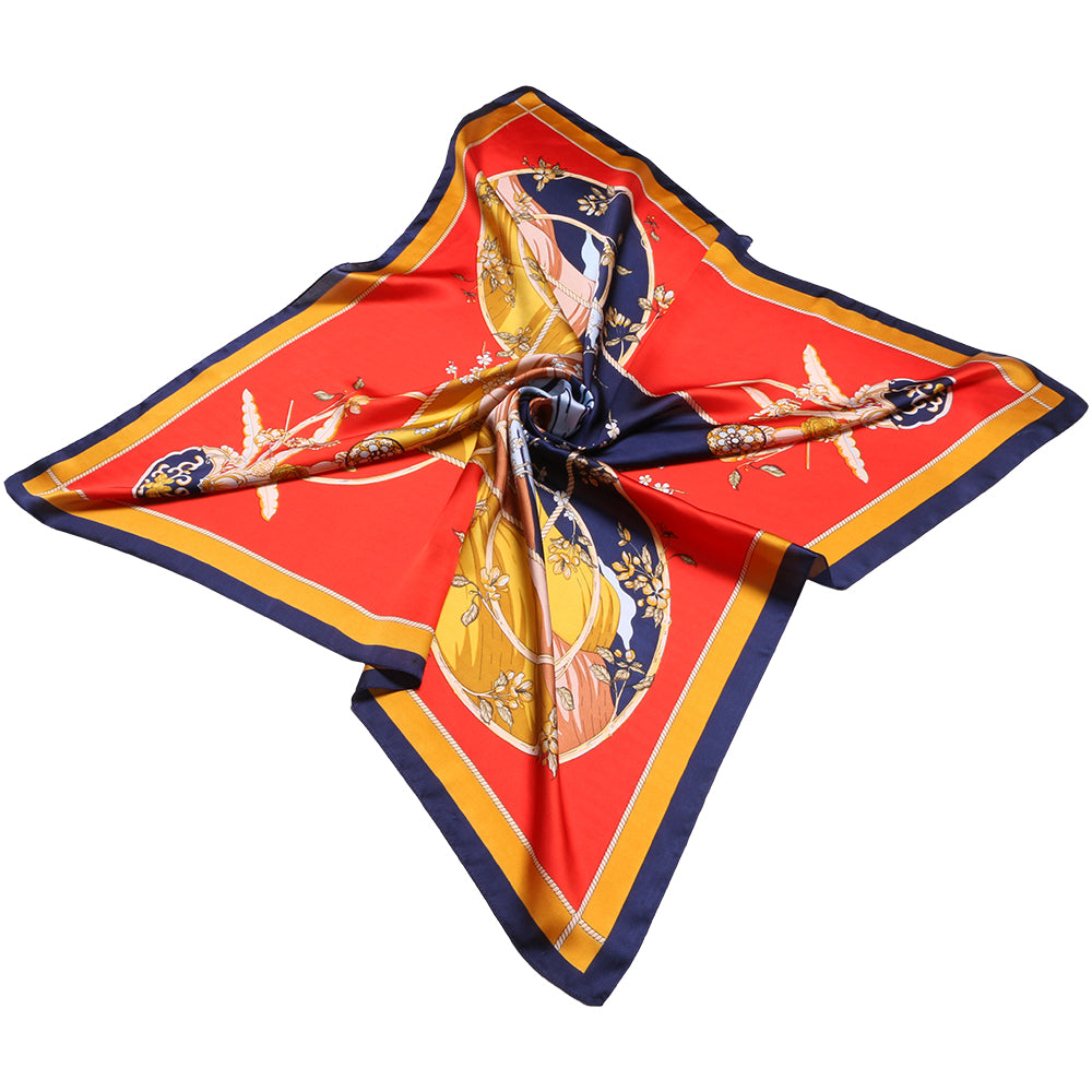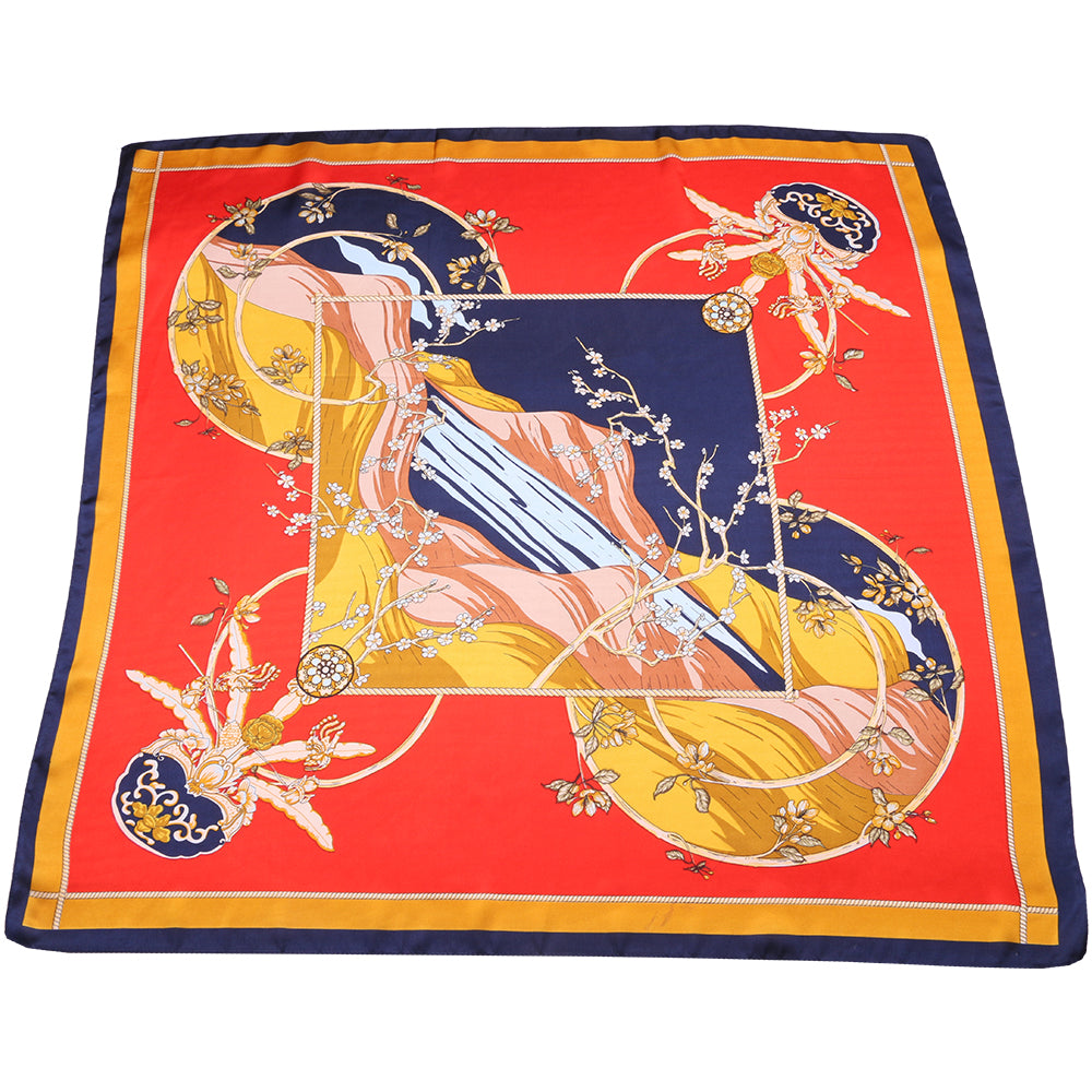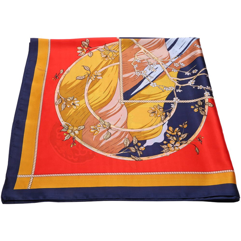 Esarfa pentru dama, casual elegant, imitatie matase, forma patrata 90 x 90 cm, imprimeu copac cu flori, ROCS SK11