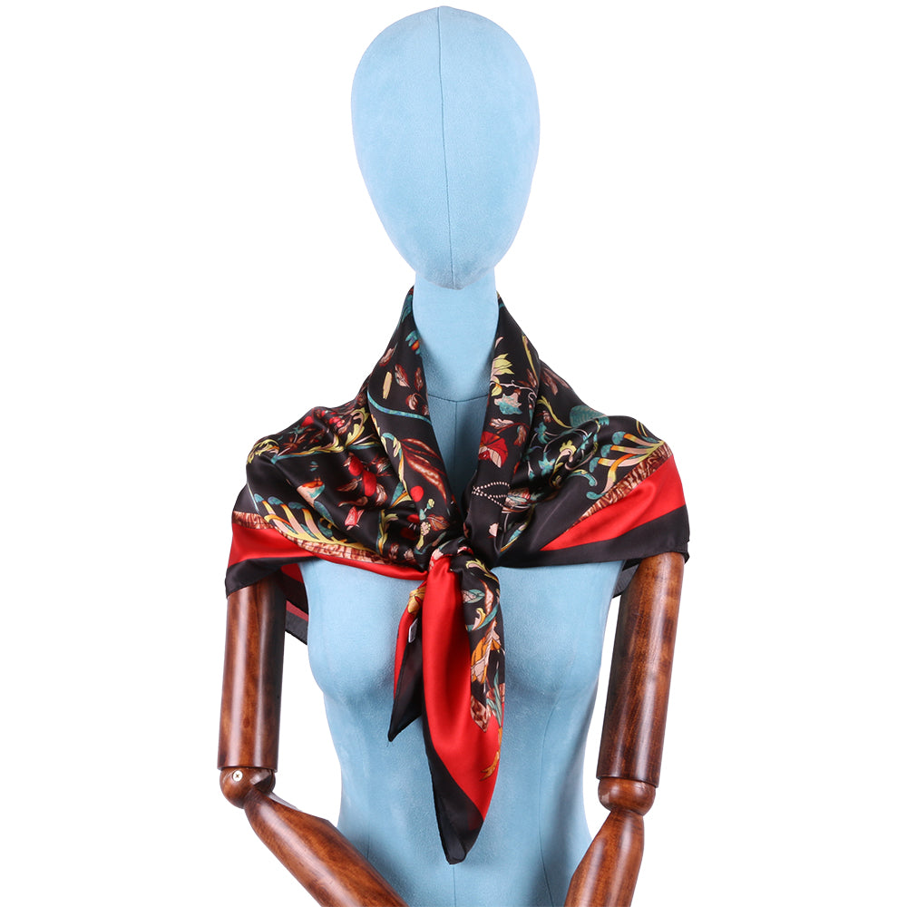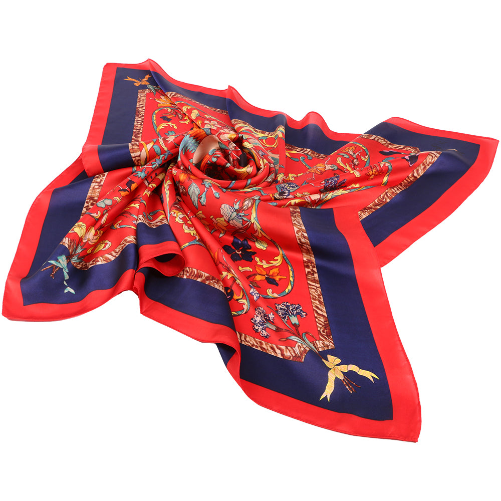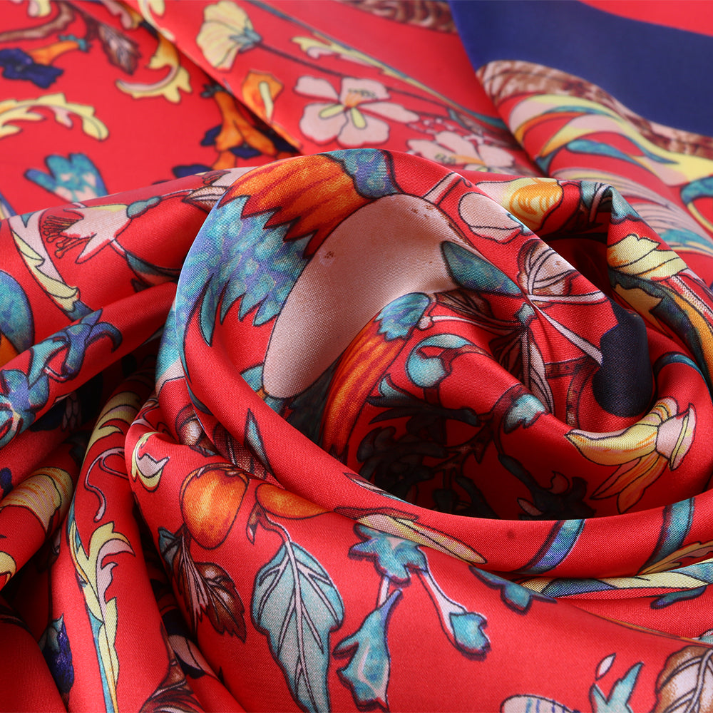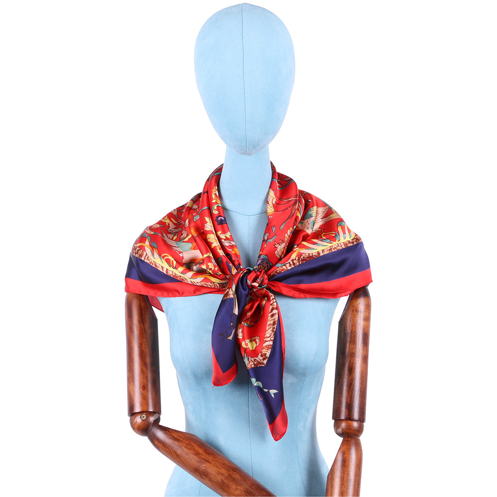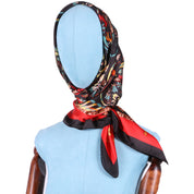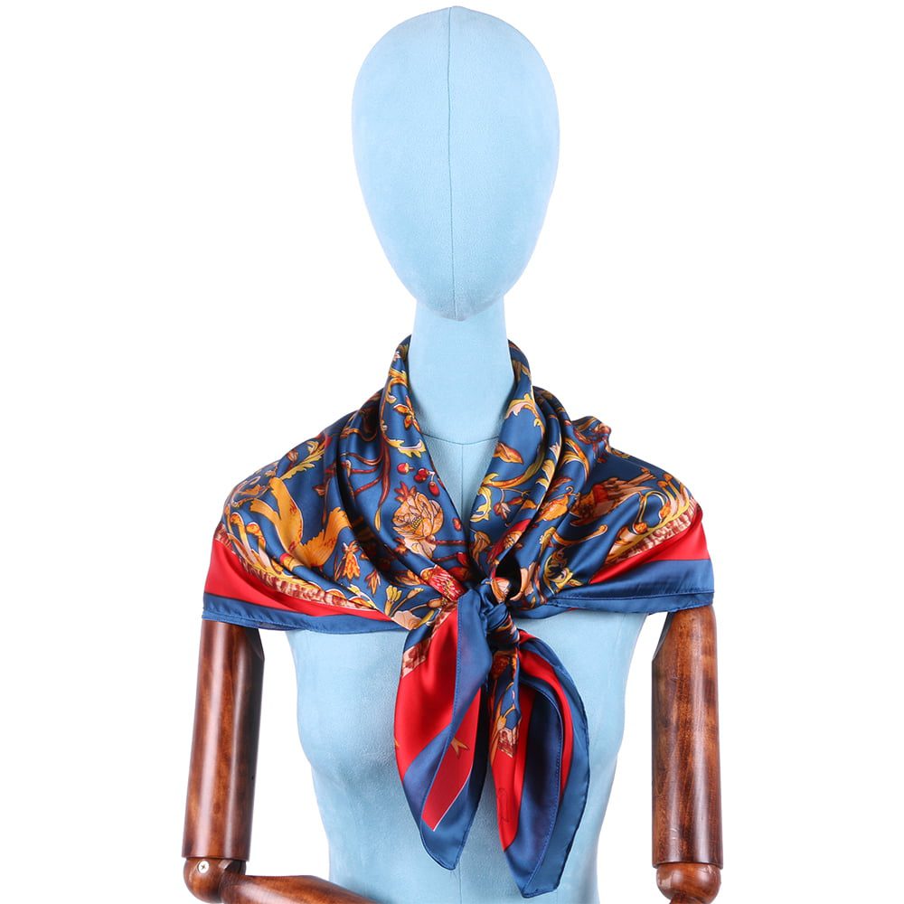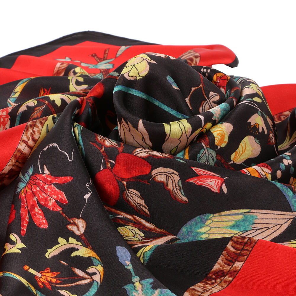 Esarfa pentru dama, imitatie matase, eleganta de forma patrata 90 x 90 cm, imprimeu gradina cu pasari, ROCS SK05