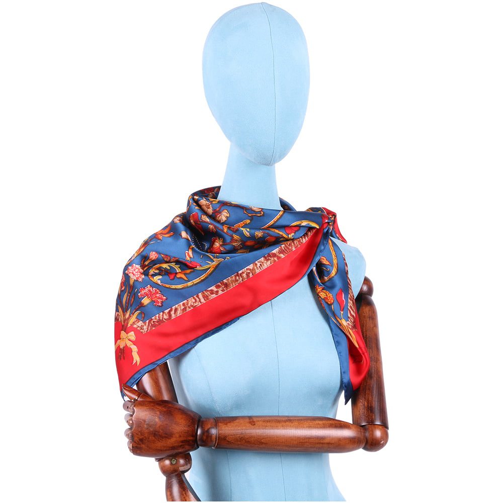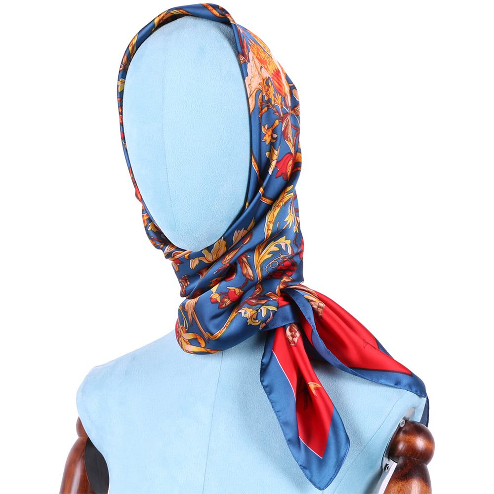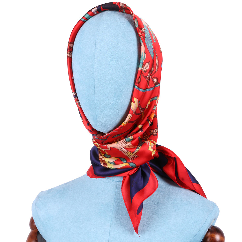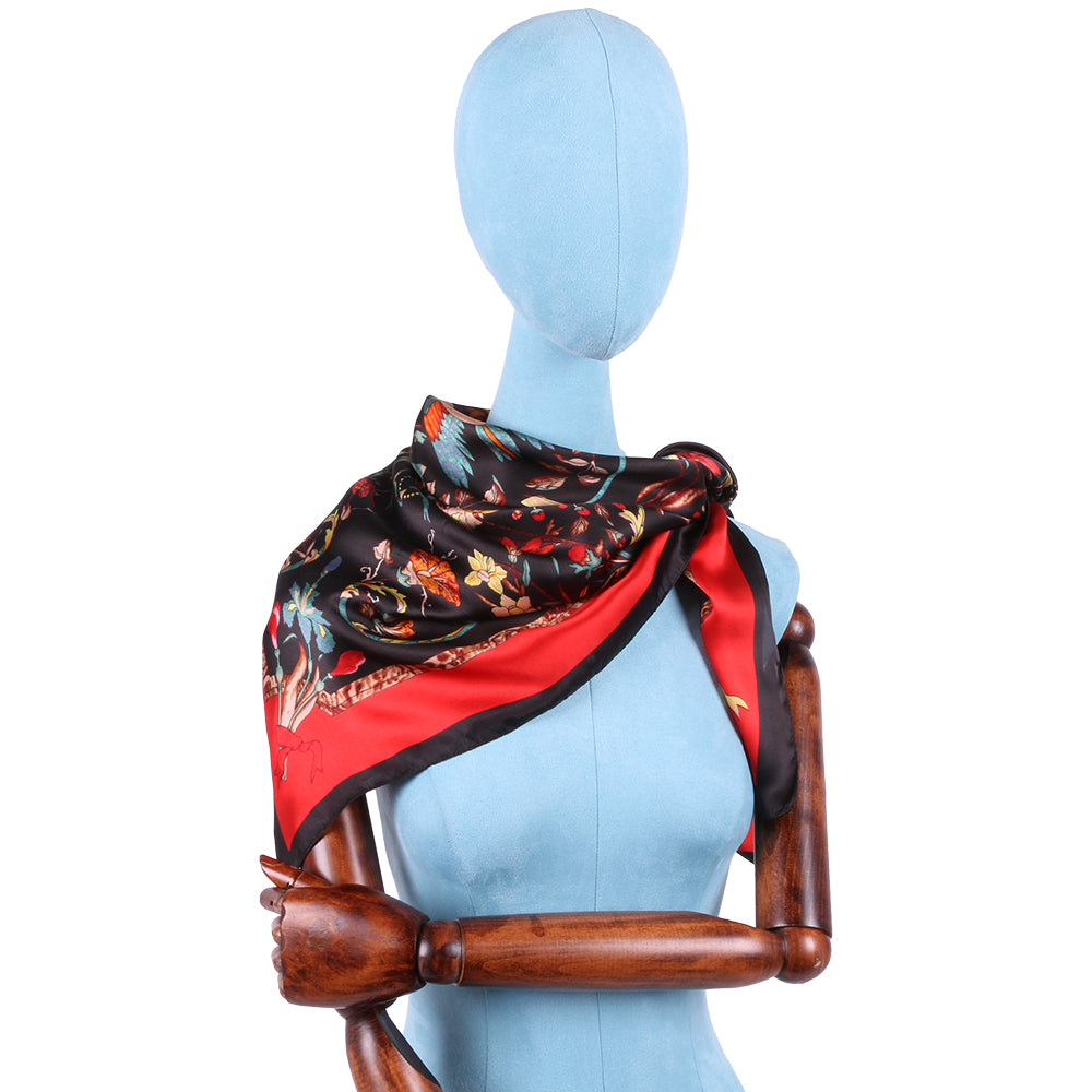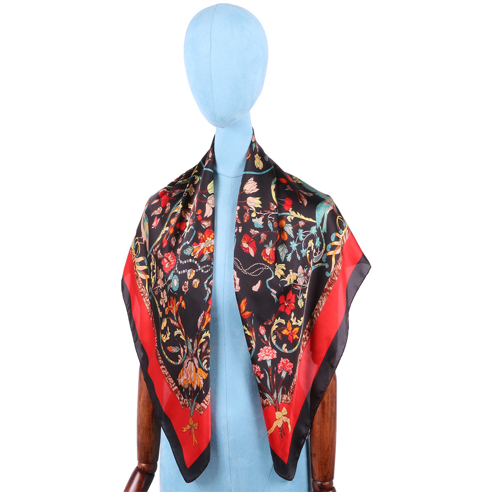 Esarfa pentru dama, imitatie matase, eleganta de forma patrata 90 x 90 cm, imprimeu gradina cu pasari, ROCS SK05