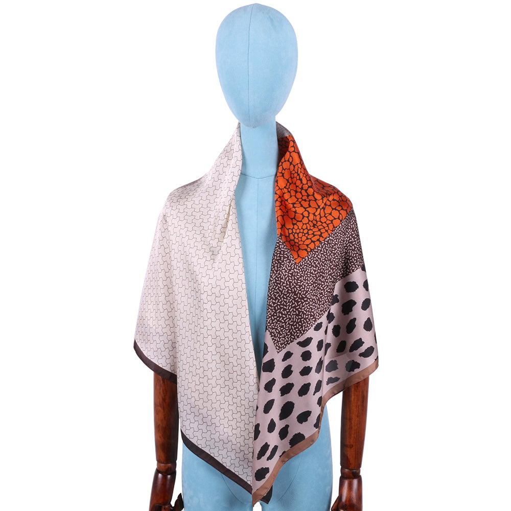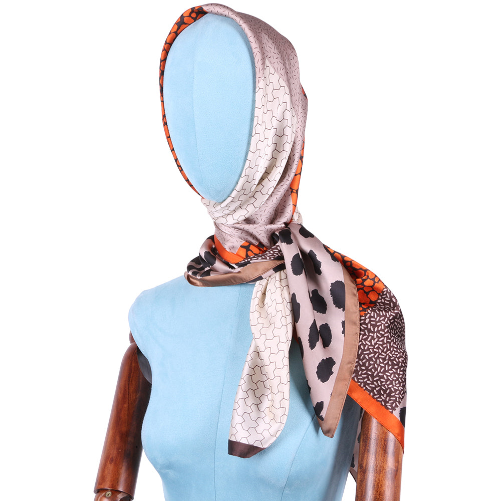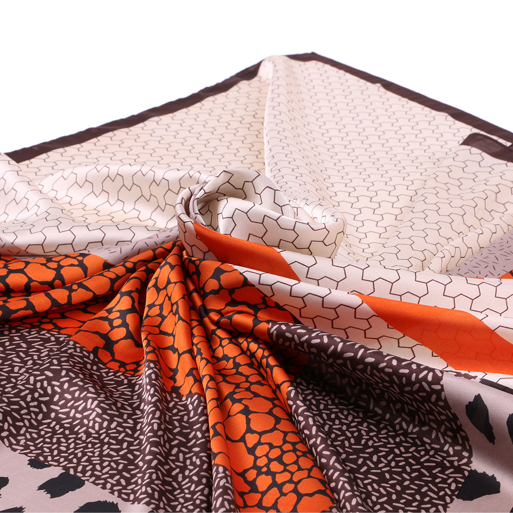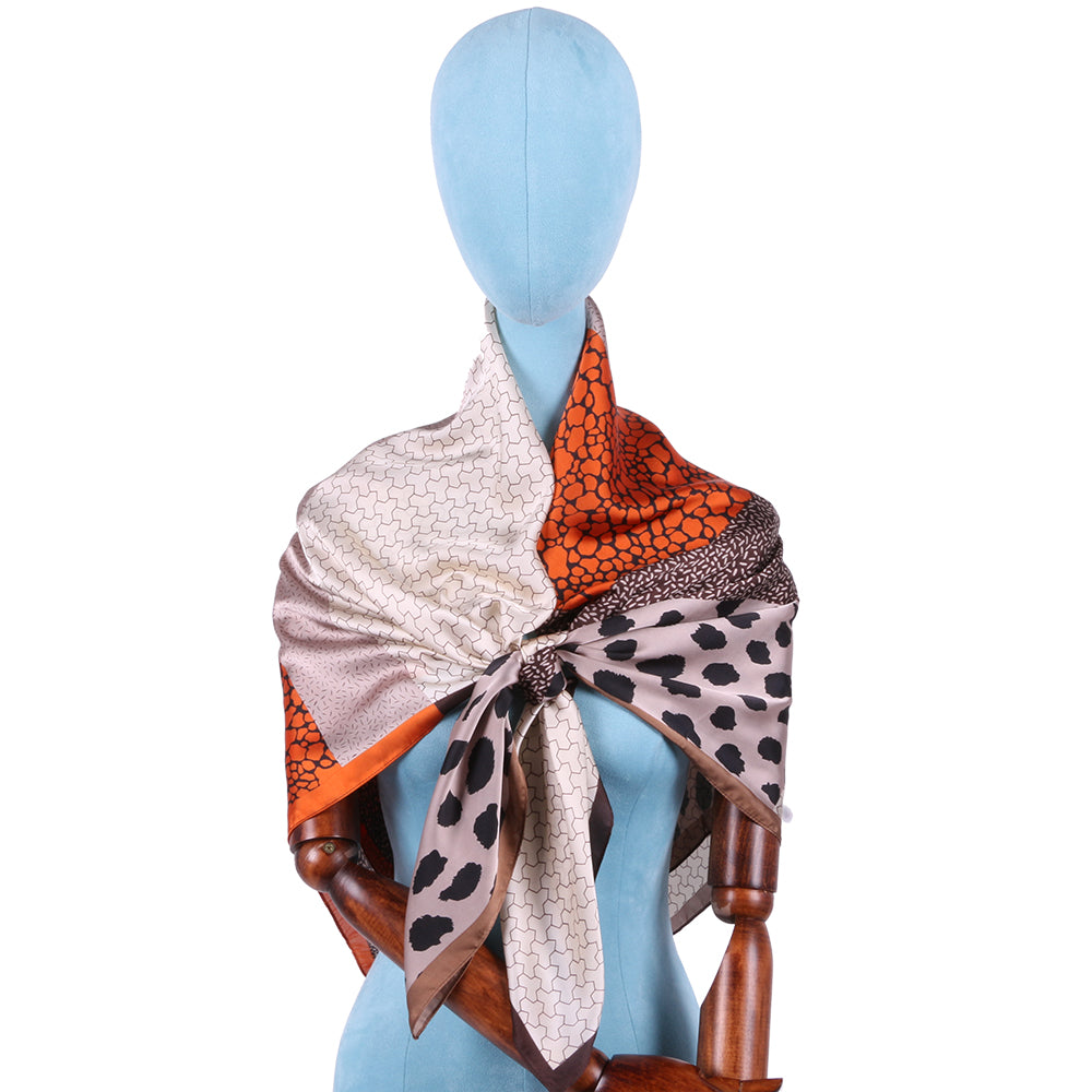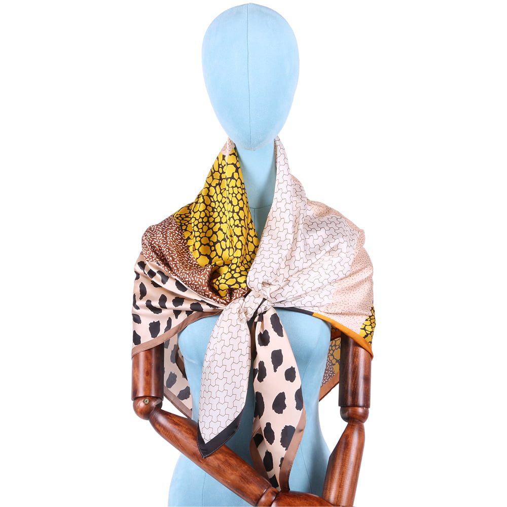 Esarfa pentru dama, stil casual eleganta, imitatie matase, forma patrata 110 x 110 cm, imprimeu abstract, ROCS SK13