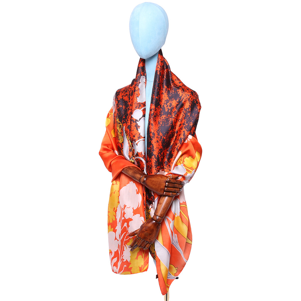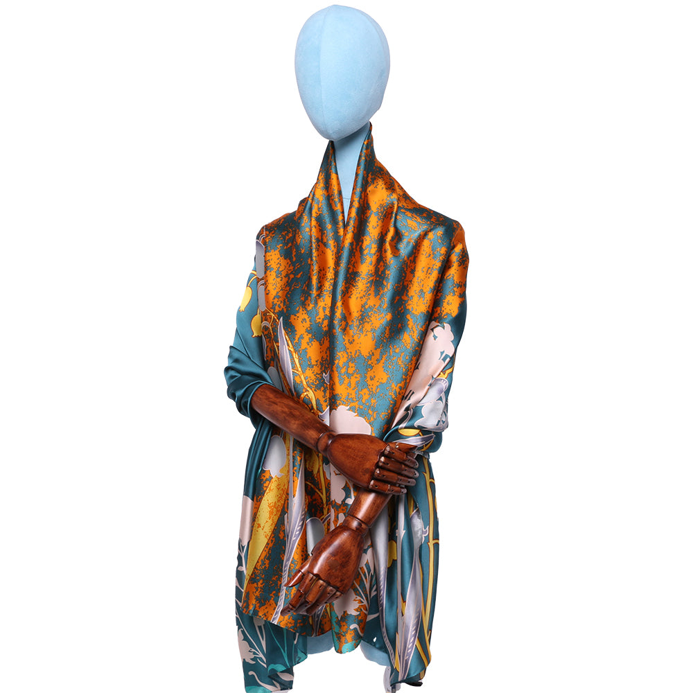 Esarfa pentru dama, stil casual elegant, imitatie matase, marimea 90 x 180cm , imprimeu abstract, model primavara vara, ROCS SK19