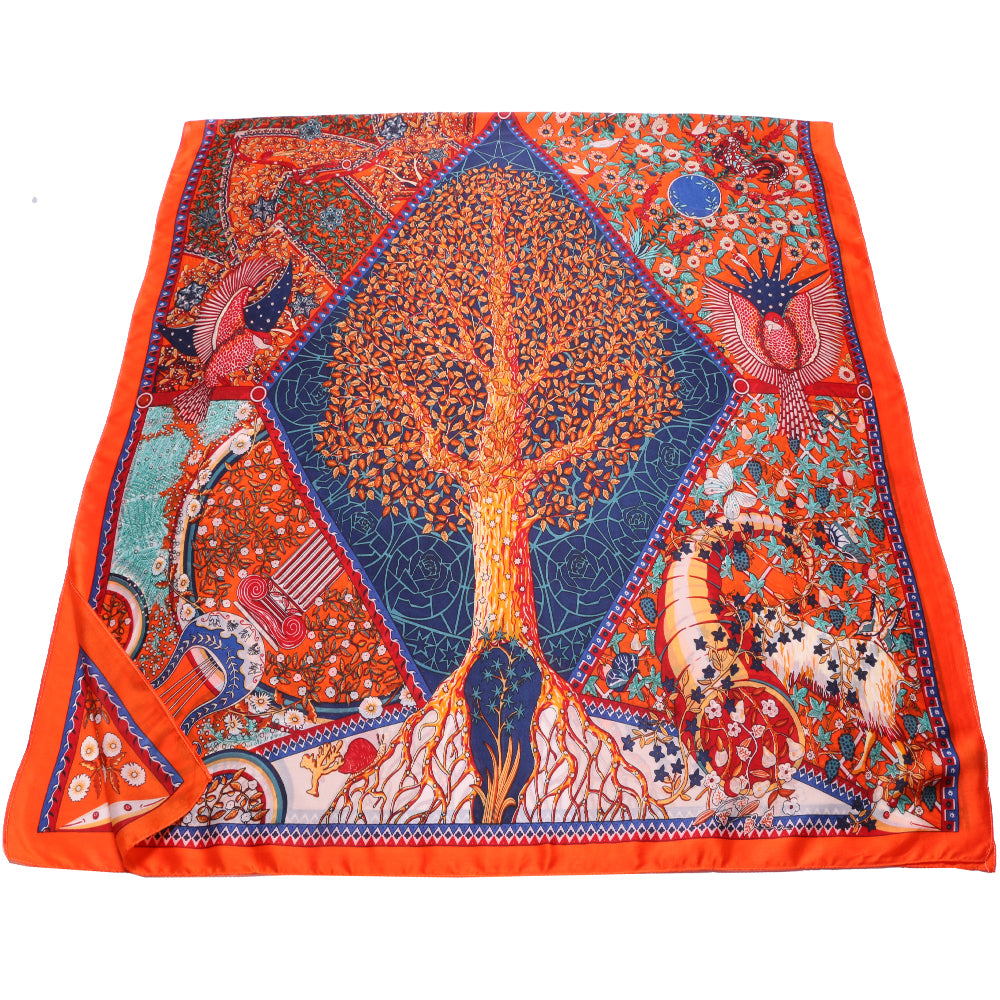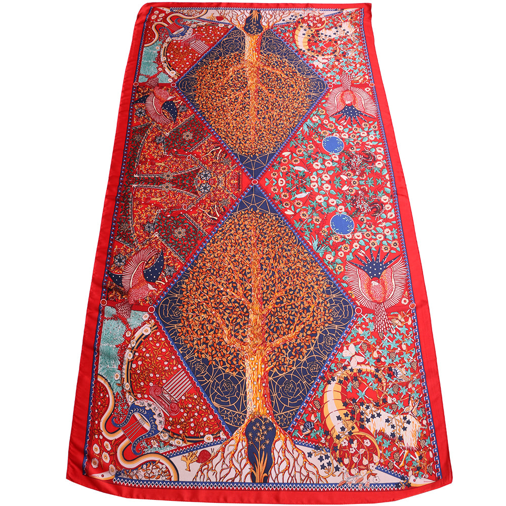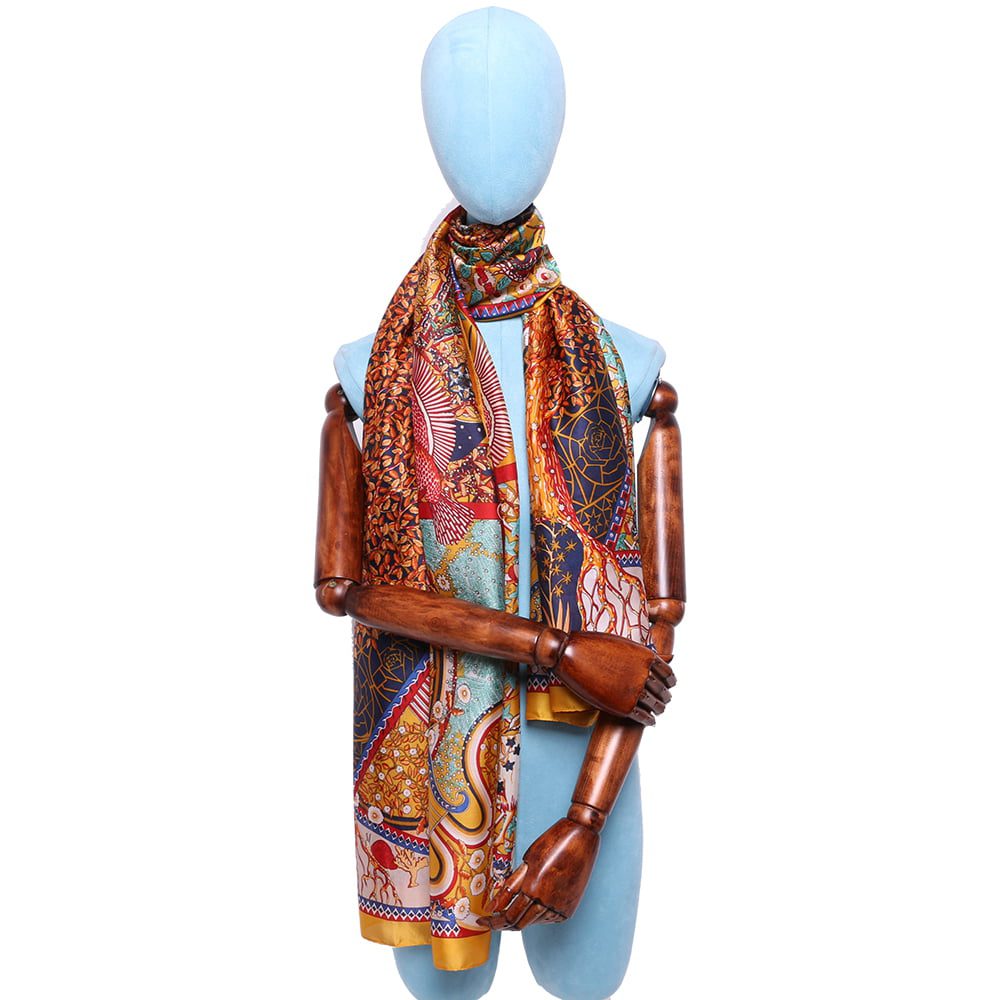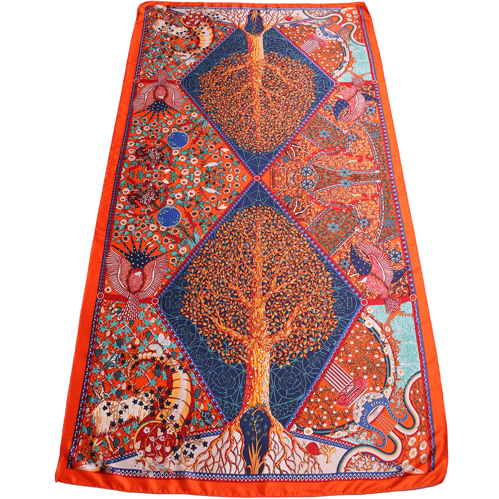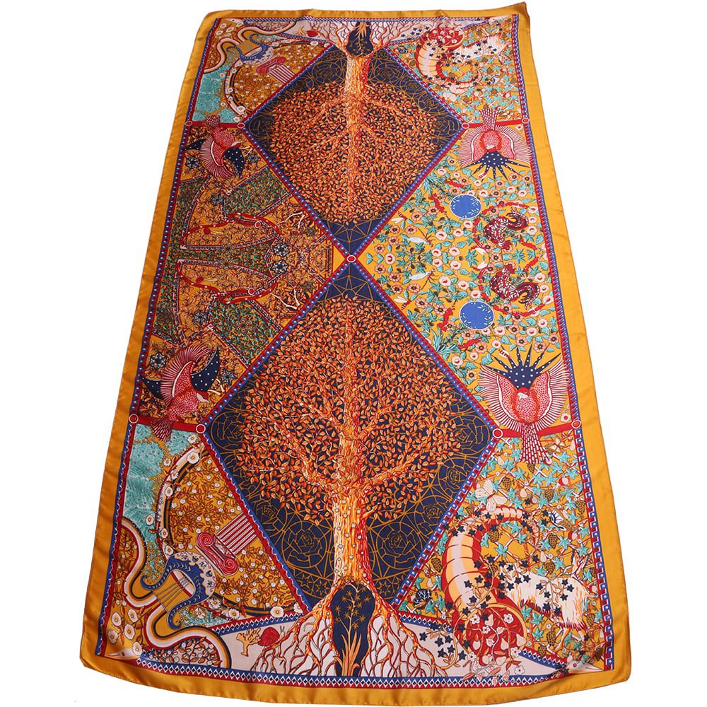 Esarfa pentru dama, stil casual elegant, imitatie matase, marime 90 x 180 cm, imprimeu copac, ROCS SK22