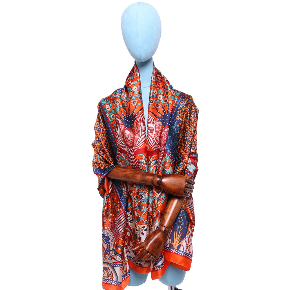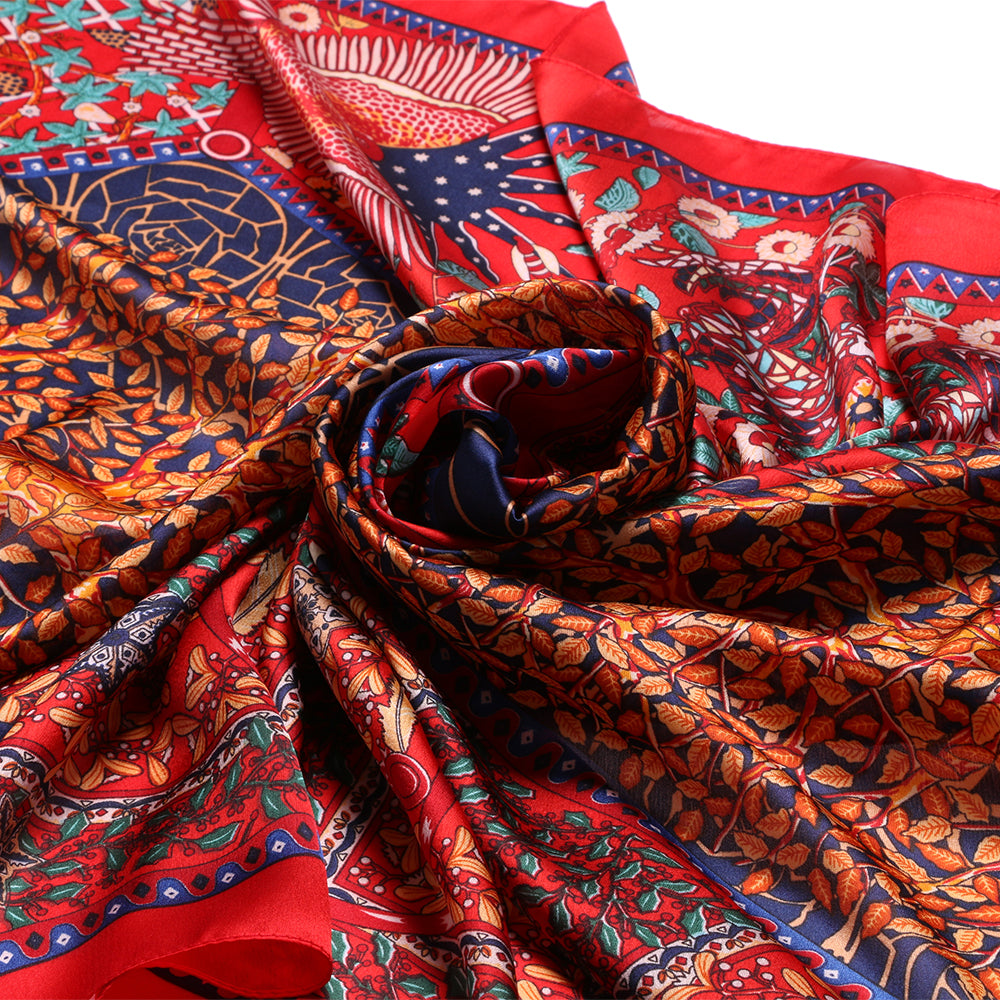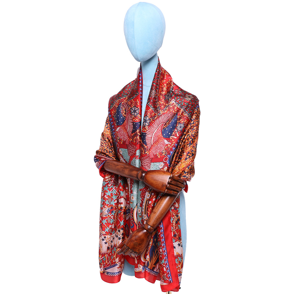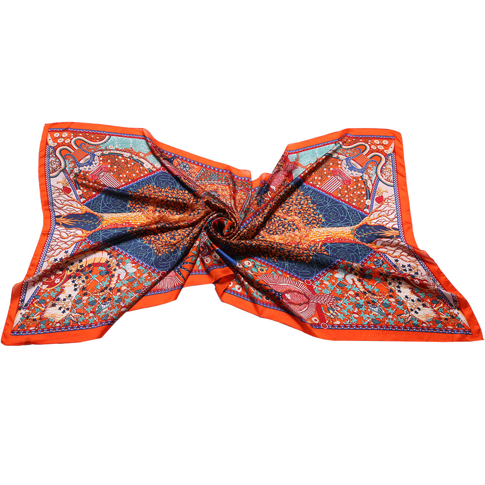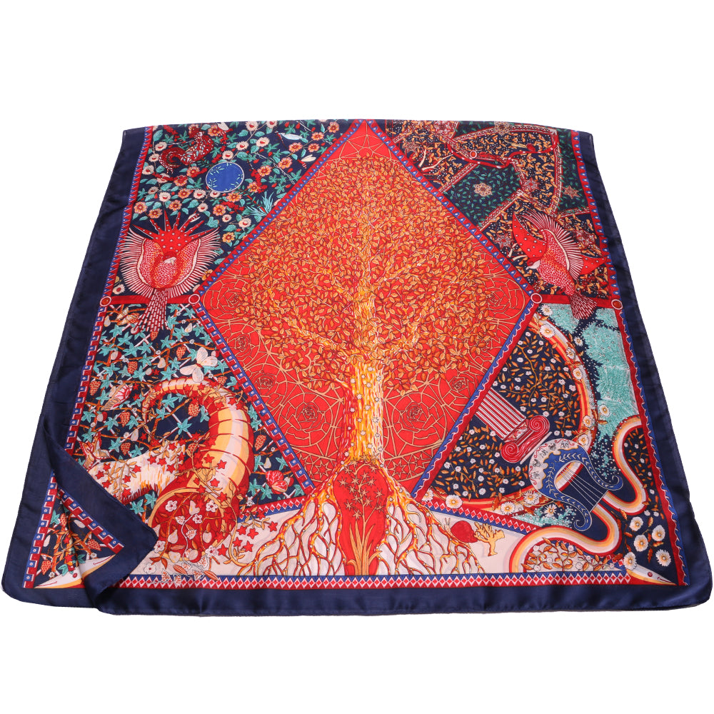 Esarfa pentru dama, stil casual elegant, imitatie matase, marime 90 x 180 cm, imprimeu copac, ROCS SK22