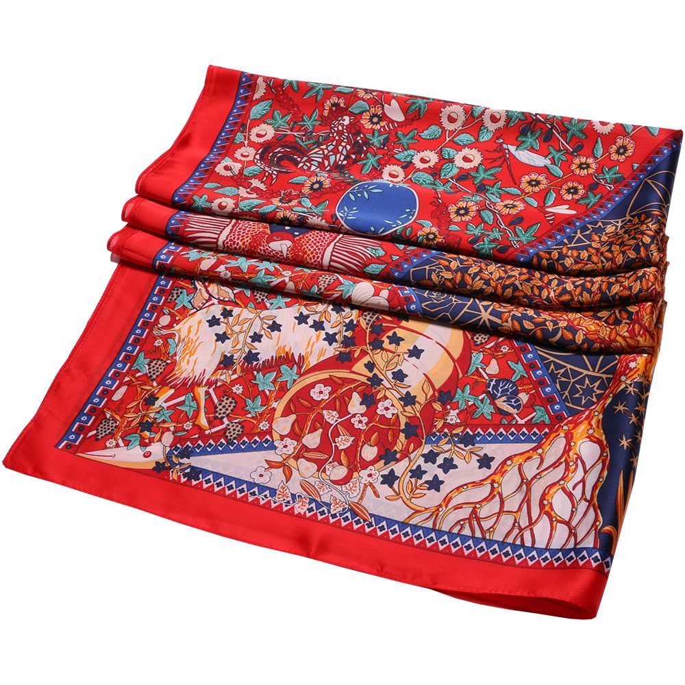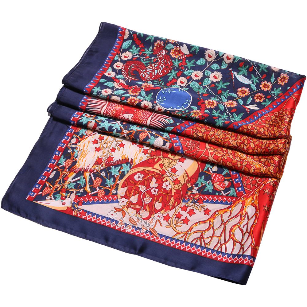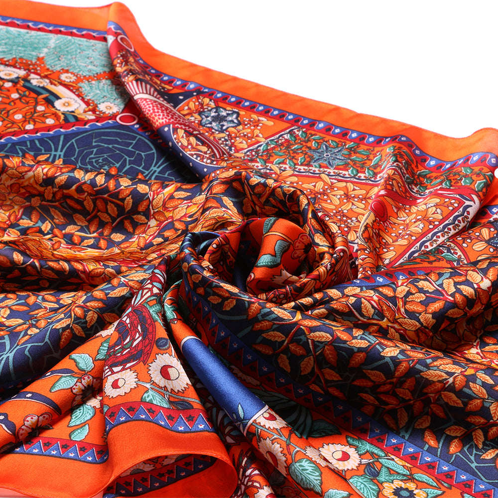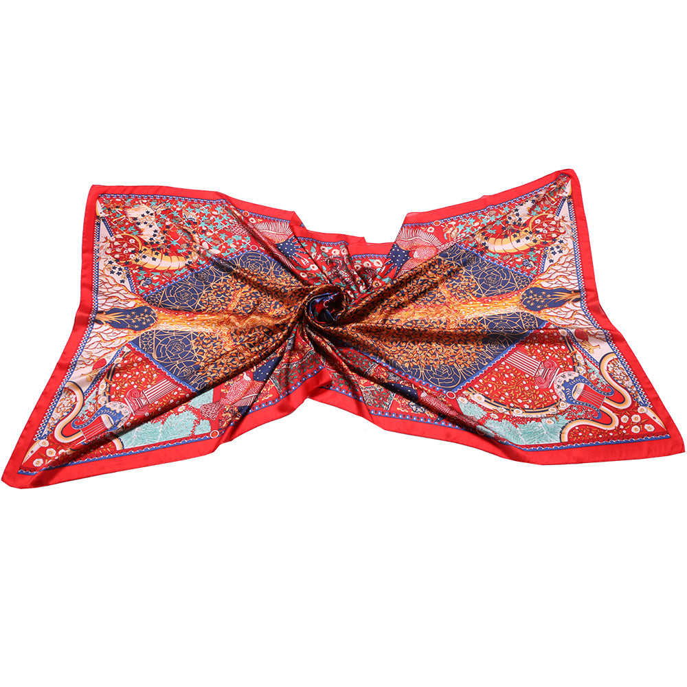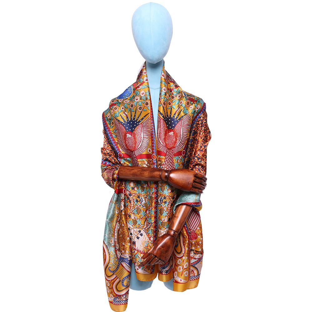 Esarfa pentru dama, stil casual elegant, imitatie matase, marime 90 x 180 cm, imprimeu copac, ROCS SK22