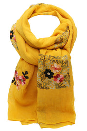 Esarfa subtire pentru dama, cu flori brodate in patrat, NK22