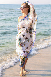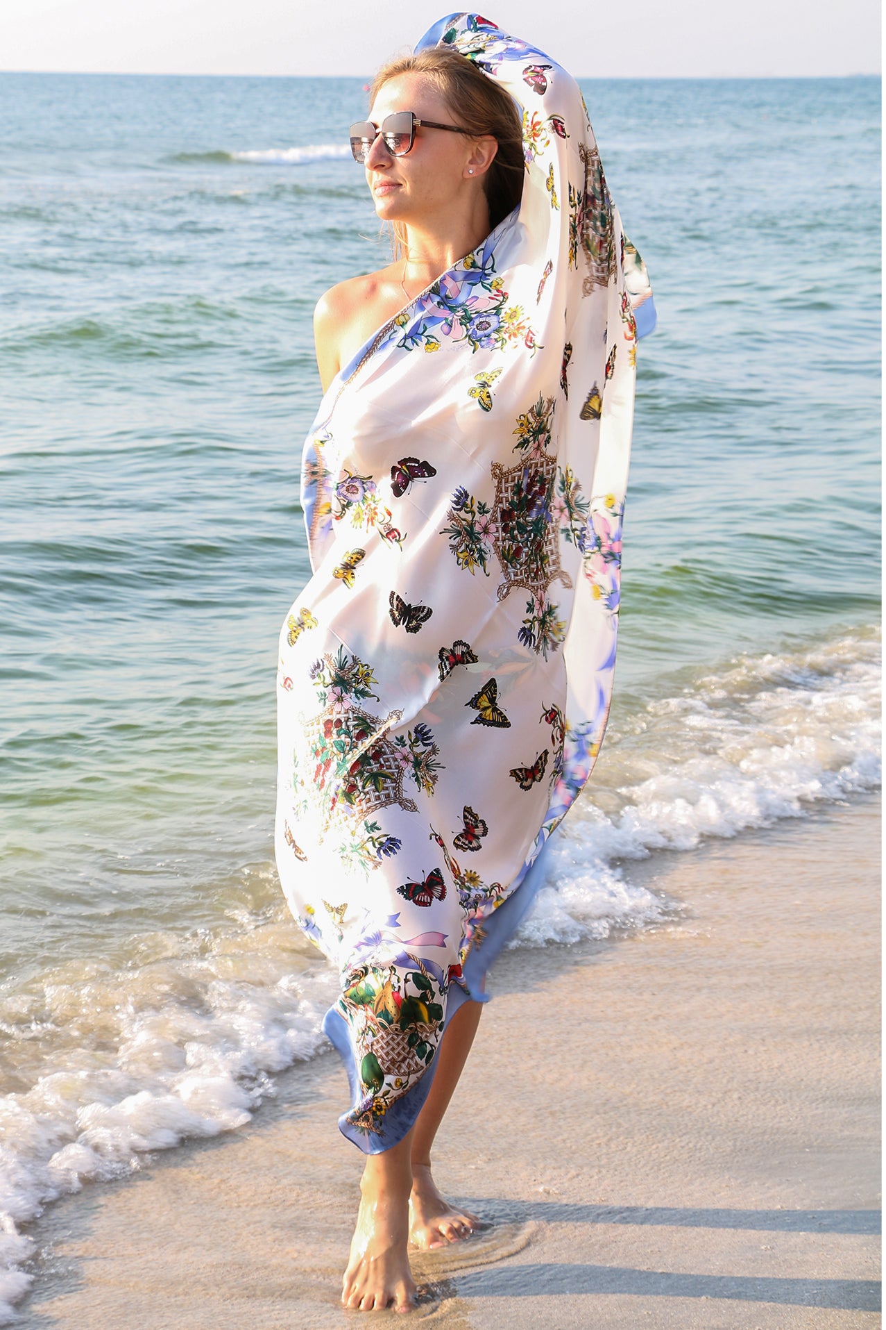 Esarfa Supradimensionata pentru Dama, casual eleganta, sezon primavara vara, imitatie Matase, cu Imprimeu Fluturi, Hilldi NK13