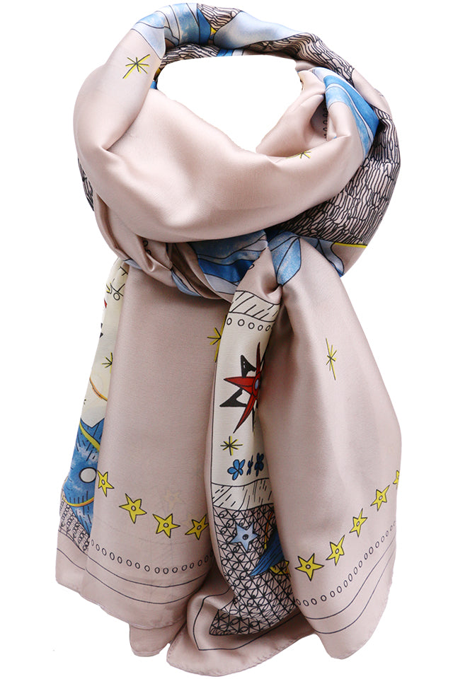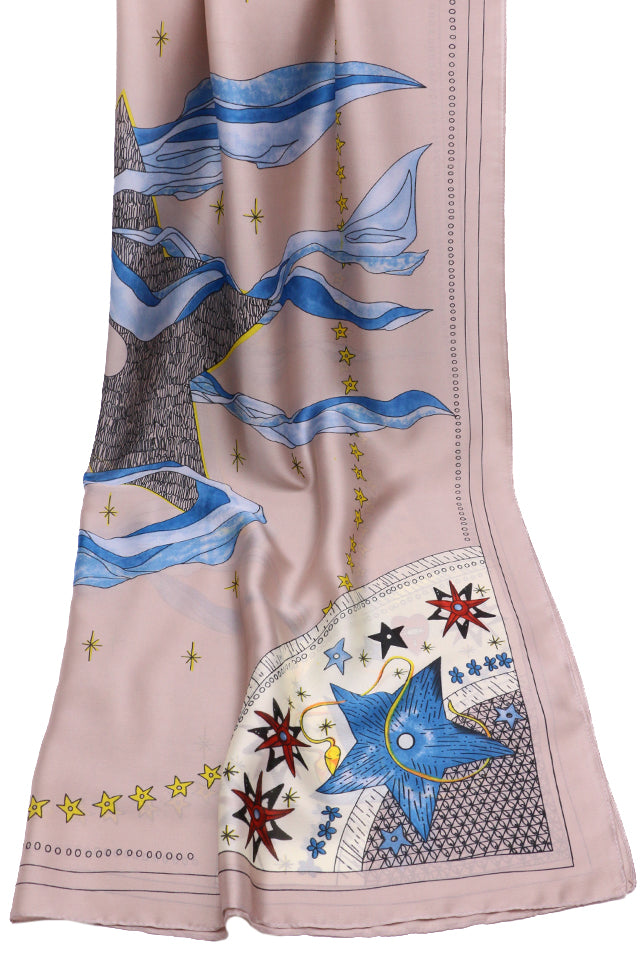 Esarfa Supradimensionata pentru Dama, casual eleganta, imitatie Matase, cu Imprimeu Stea, primavara vara Hilldi NK14
