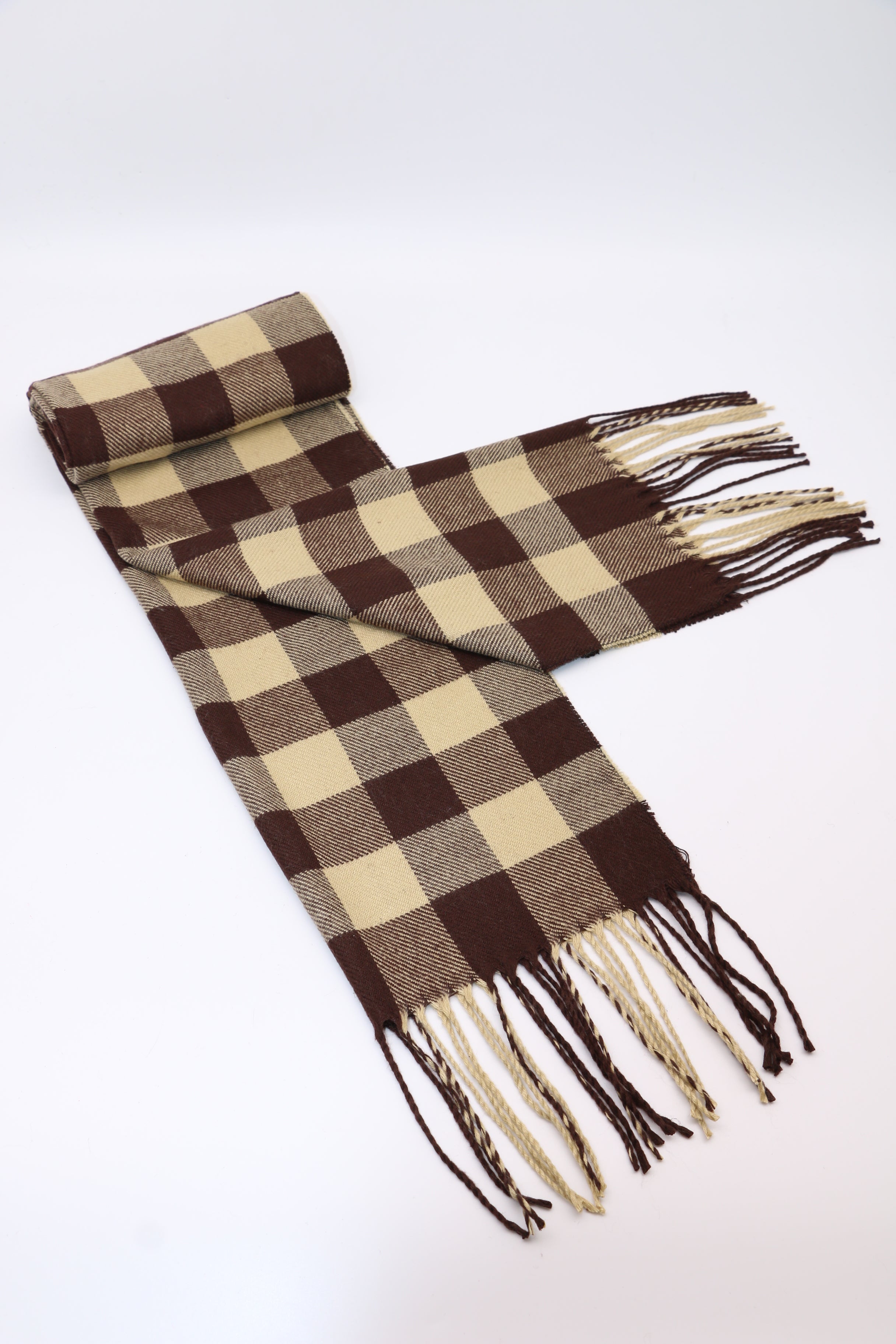 Fular pentru barbati, din viscoza moale, in carouri Check, pentru perioada rece, cu franjuri, ROCS ZS-4, Adamin