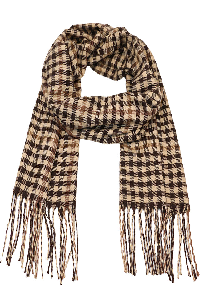 Fular pentru barbati, din viscoza moale in carouri mici, pentru perioada rece, cu franjuri, ROCS ZS-4m Adam