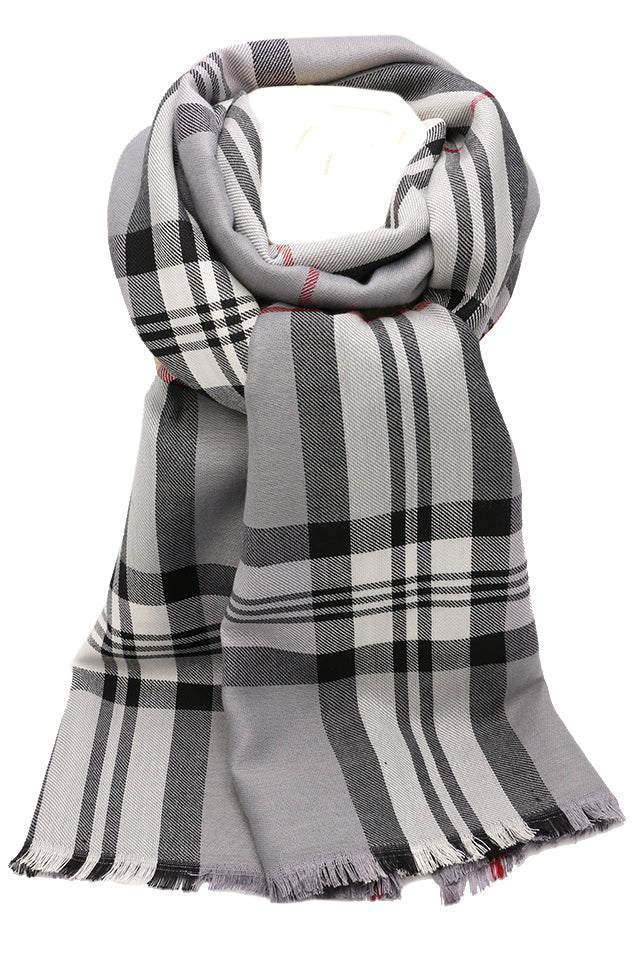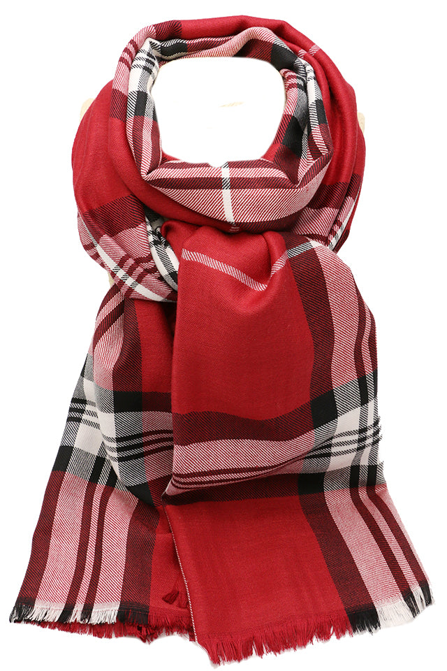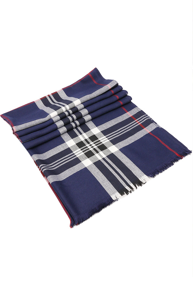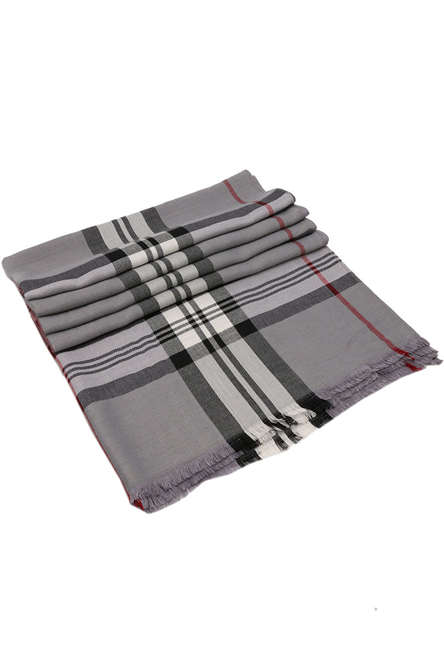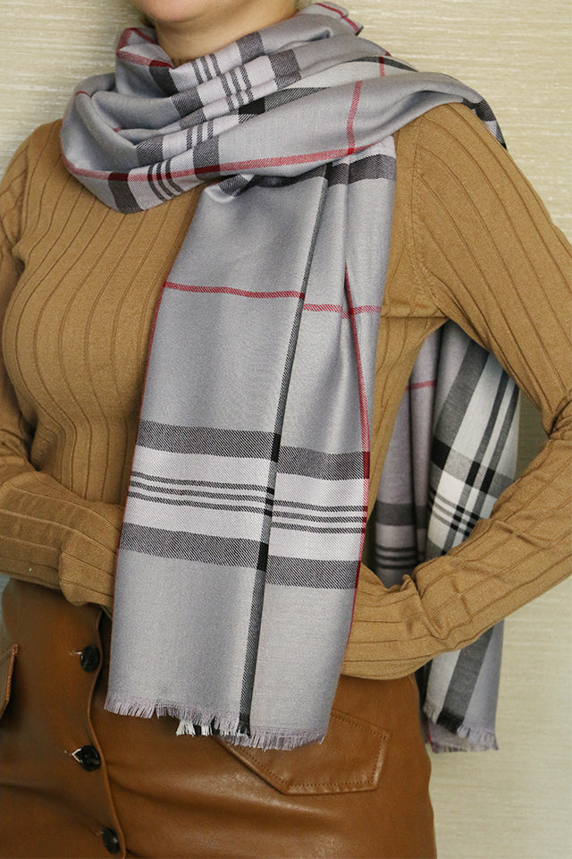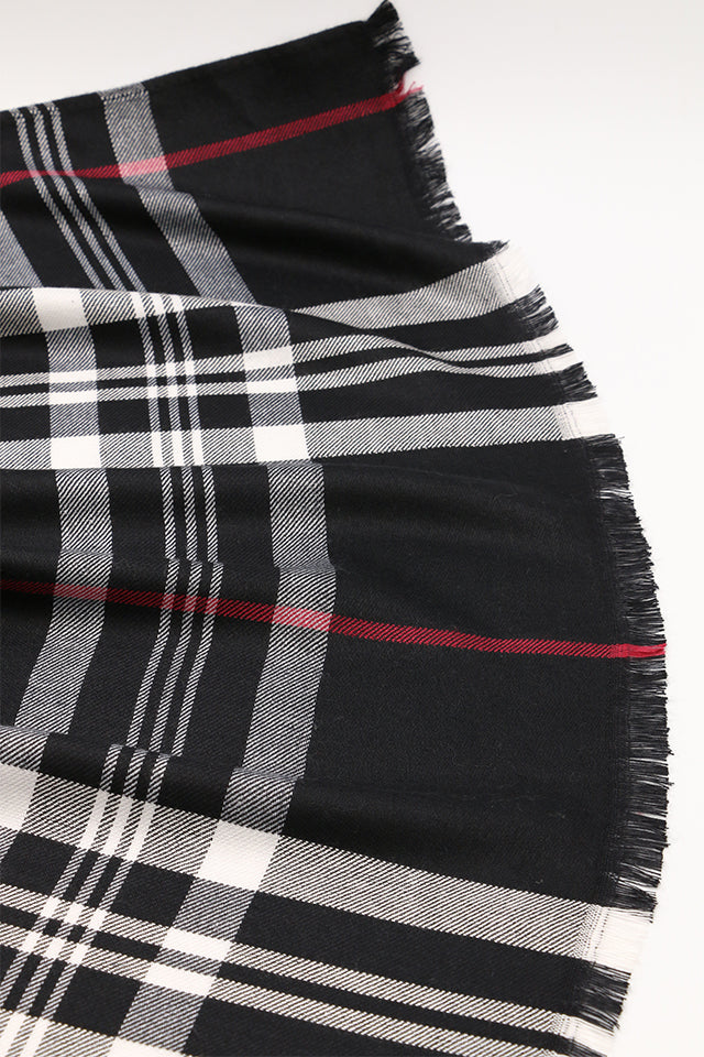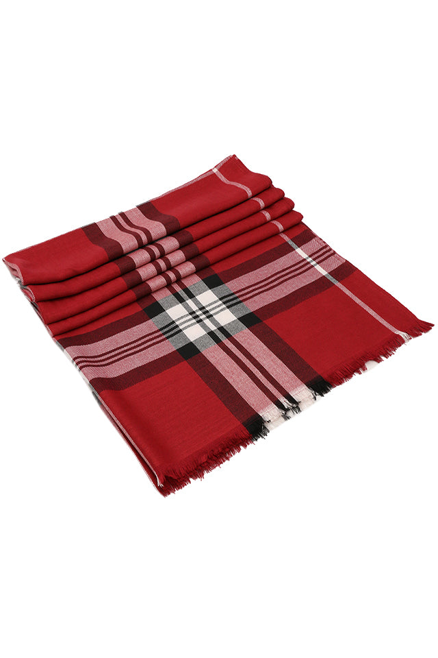 Fular subtire pentru dama, stil casual elegant, din viscoza fina, in carouri, cu franjuri, ROCS NK19