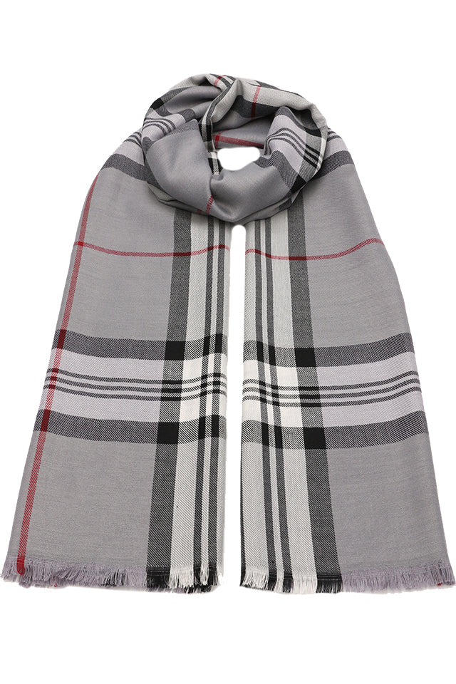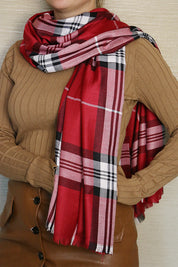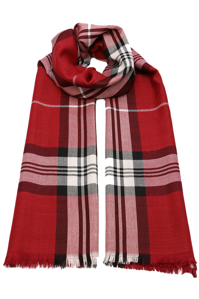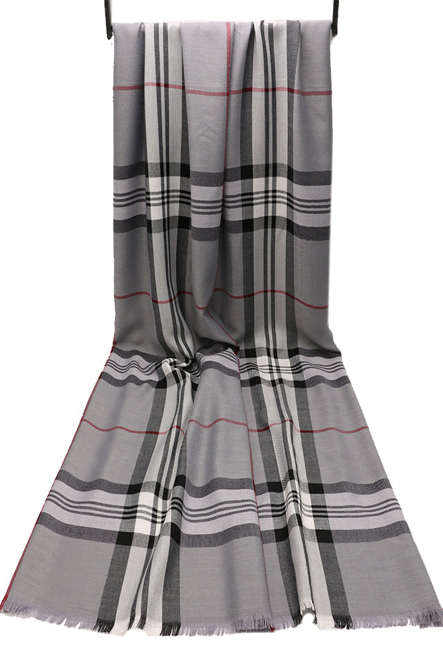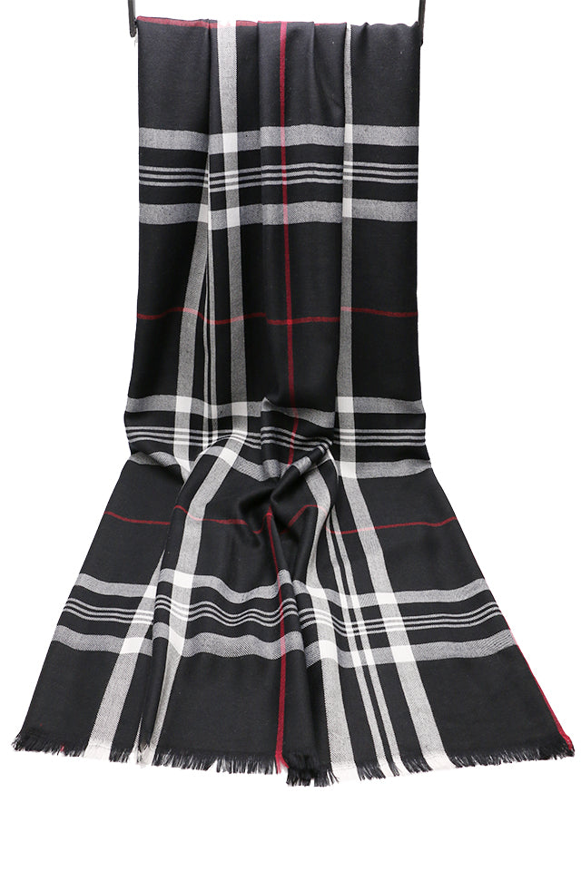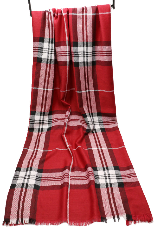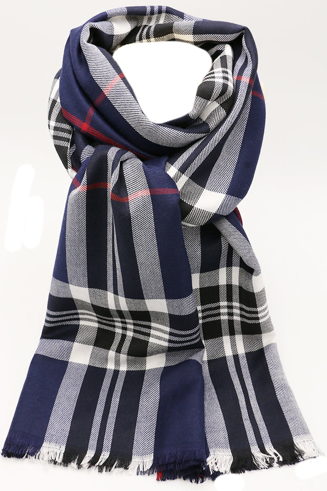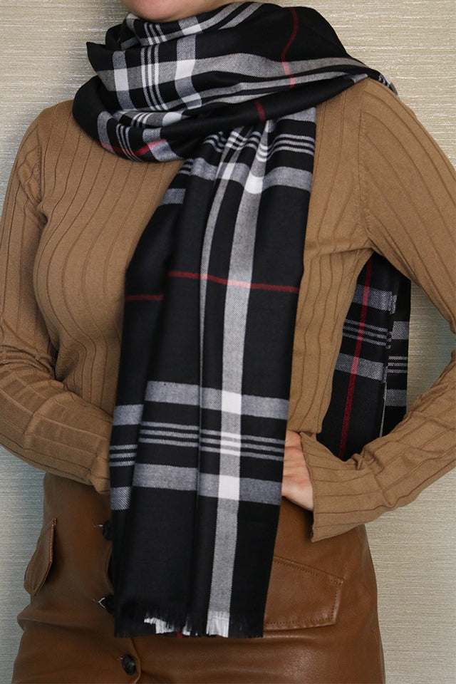 Fular subtire pentru dama, stil casual elegant, din viscoza fina, in carouri, cu franjuri, ROCS NK19