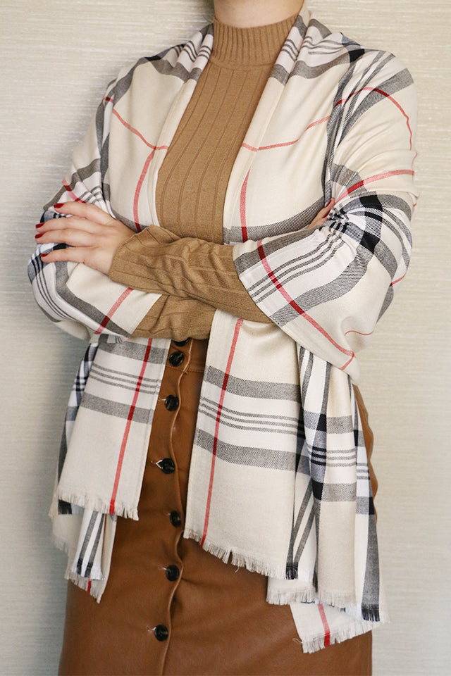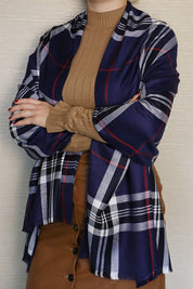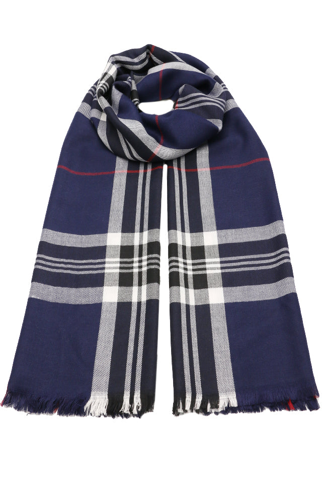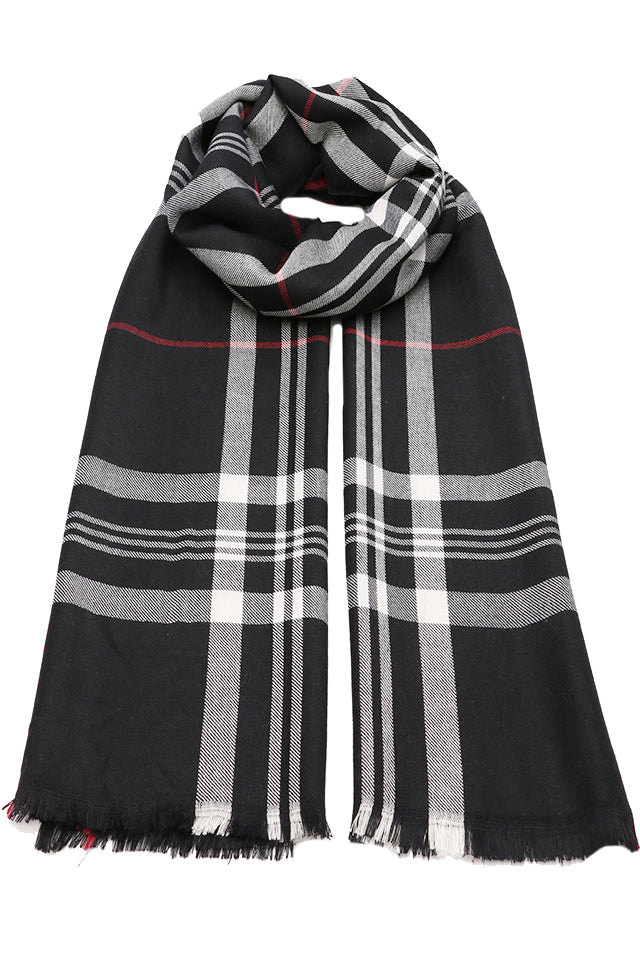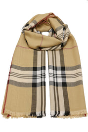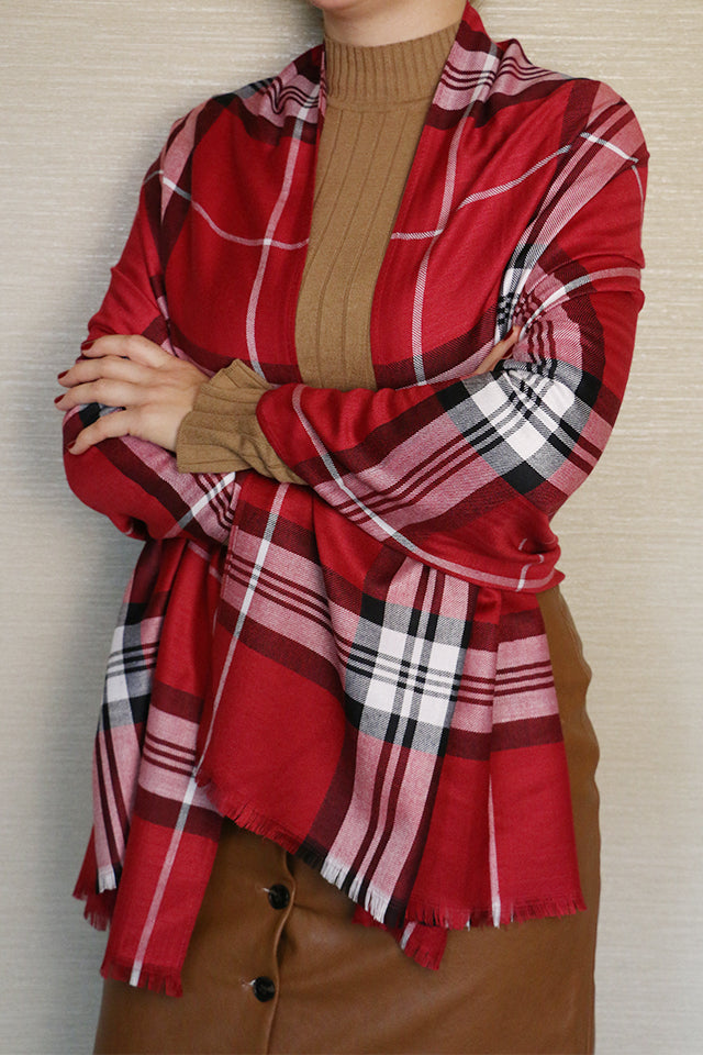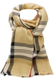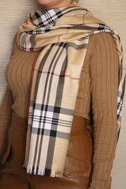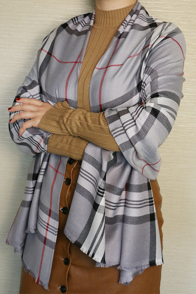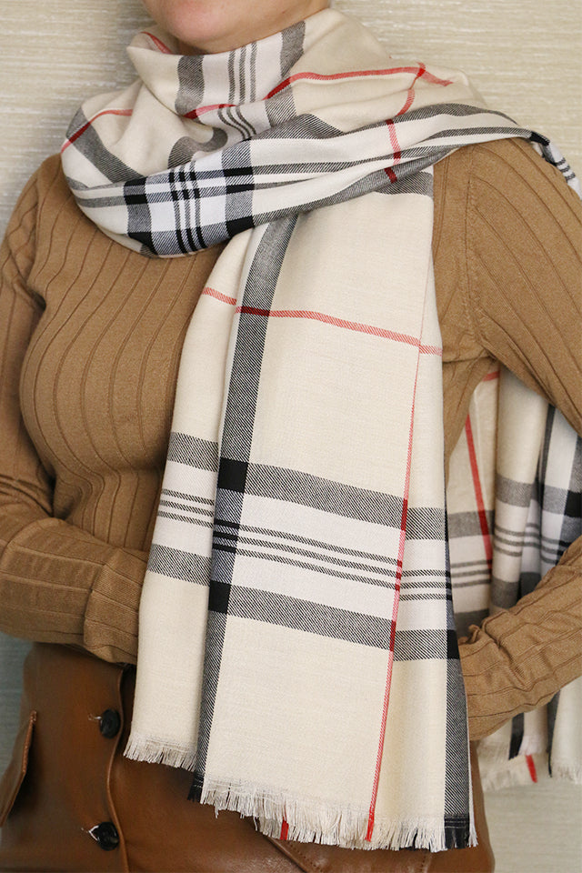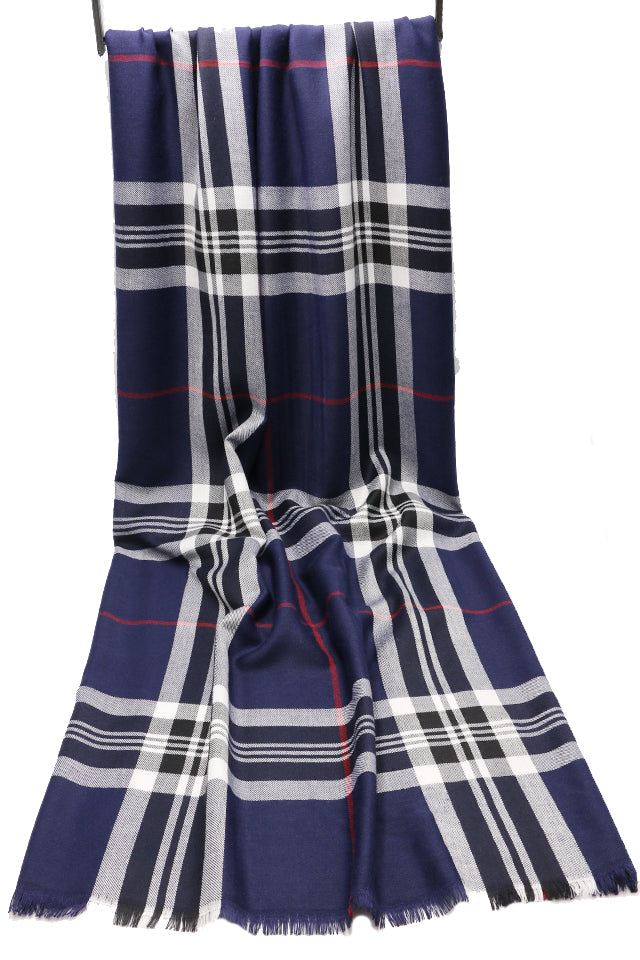 Fular subtire pentru dama, stil casual elegant, din viscoza fina, in carouri, cu franjuri, ROCS NK19
