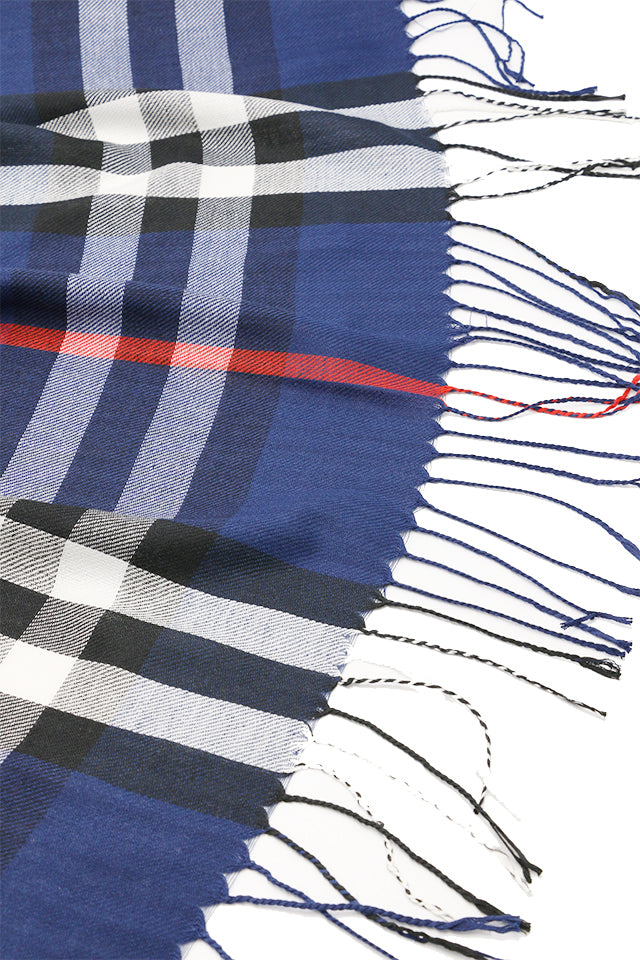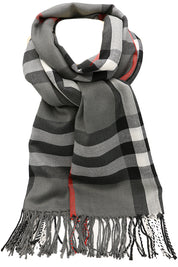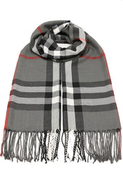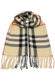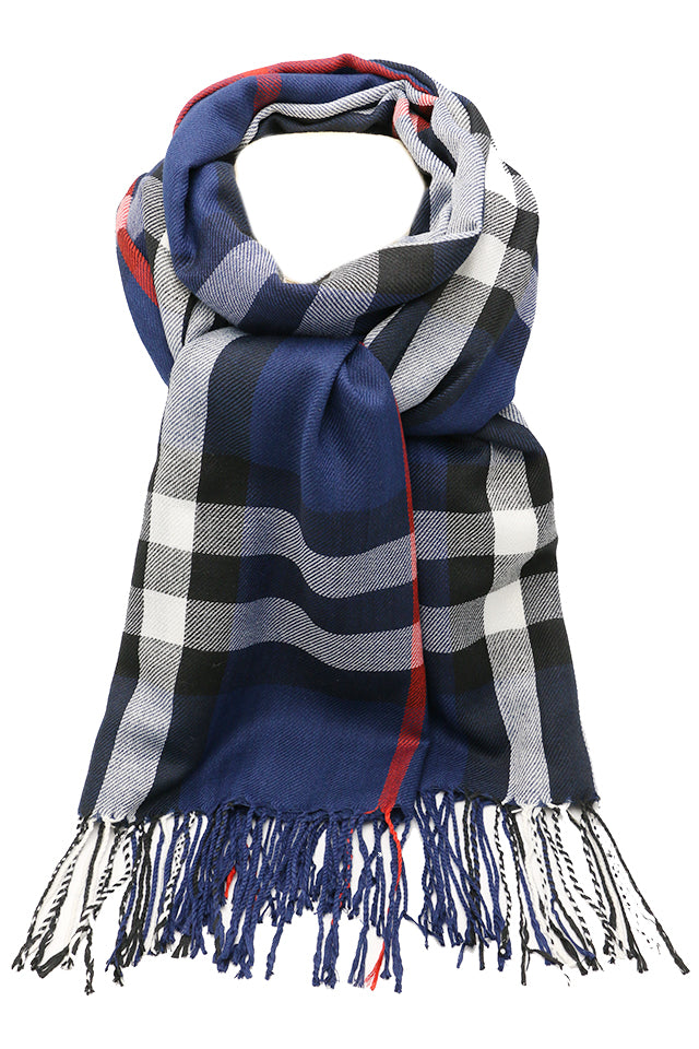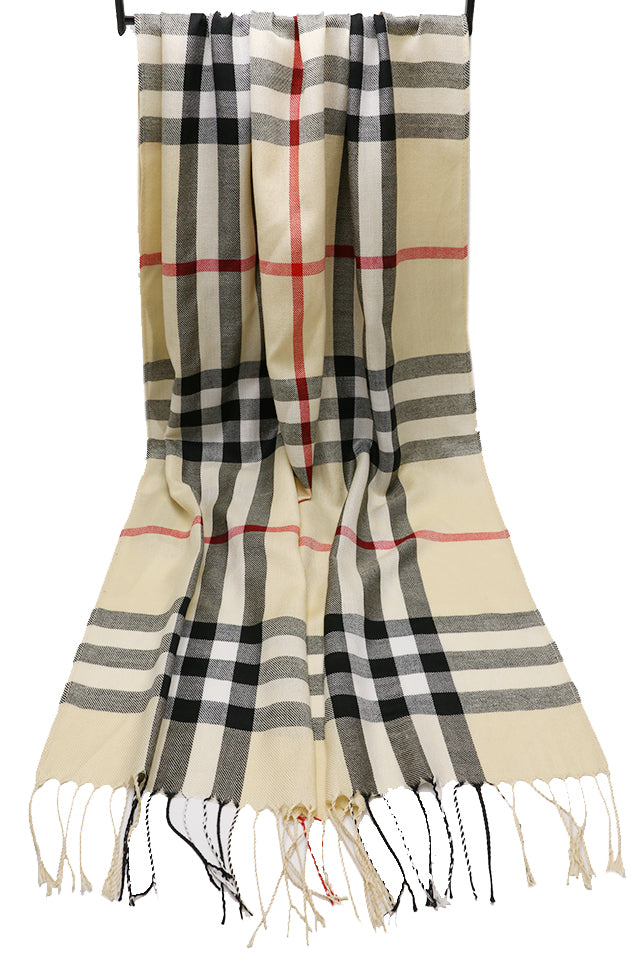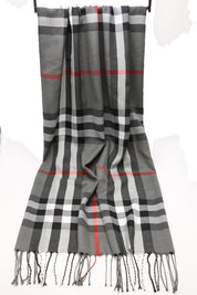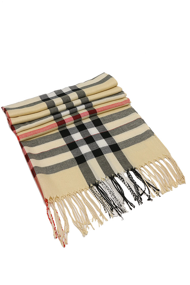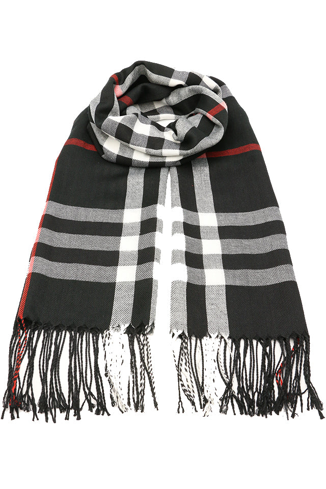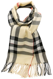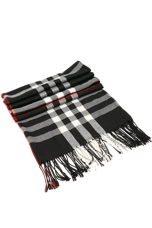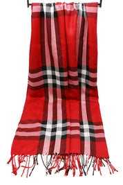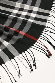 Fular subtire pentru femei, din viscoza fina, sezon toamna primavara, in carouri, cu franjuri, ROCS B036