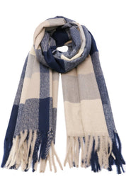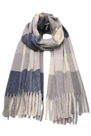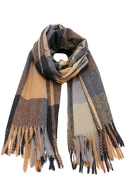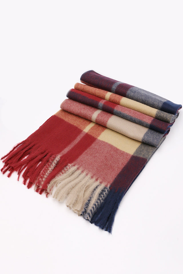 Fular tip sal pentru dama, stil casual pentru sezonul rece, in carouri mari, cu franjuri, din viscoza moale la atingere, ROCS B005