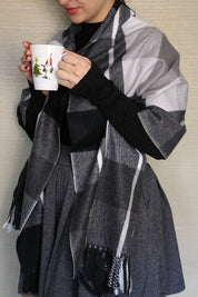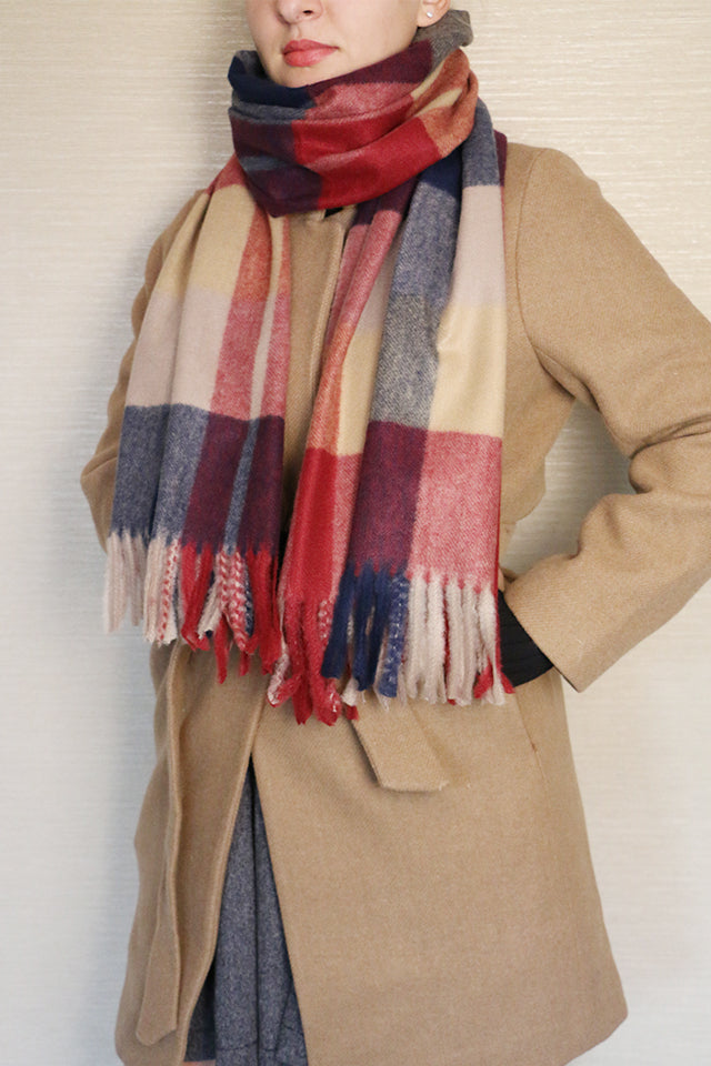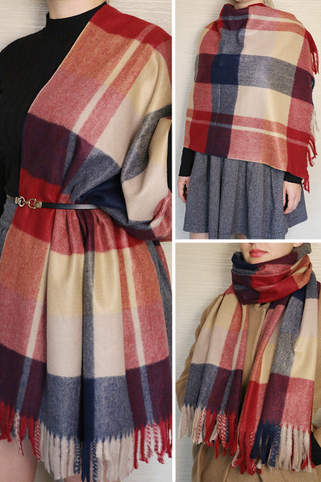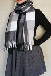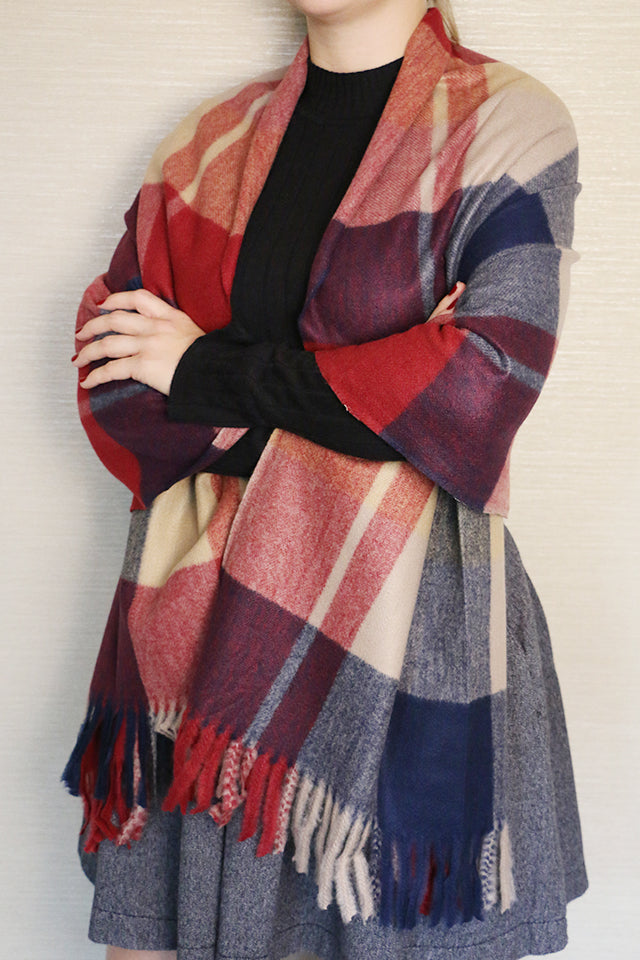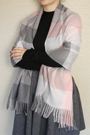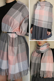 Fular sau sal pentru dama, in carouri mari, marginile sunt decorate cu franjuri pufoase, confectionat din material foarte moale si fin la atingere.