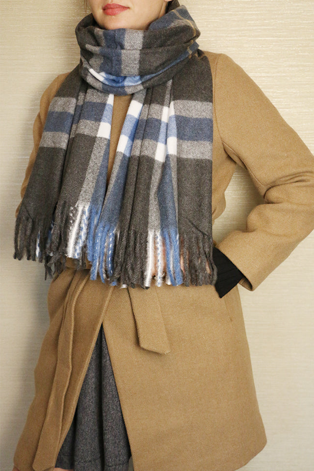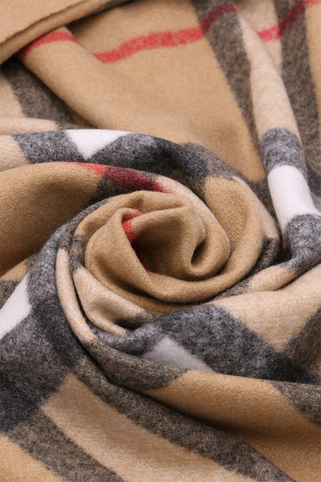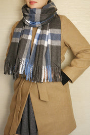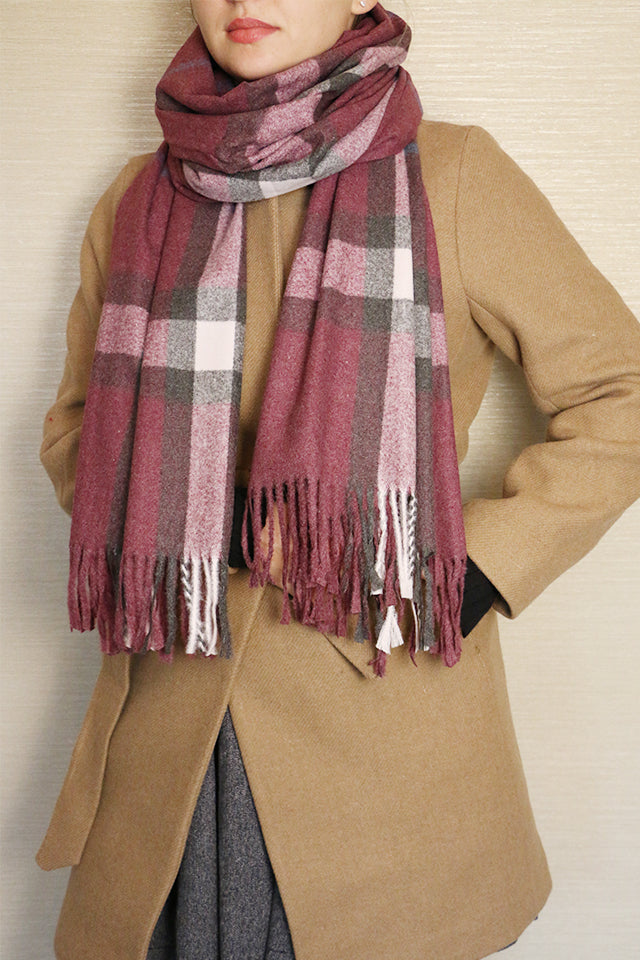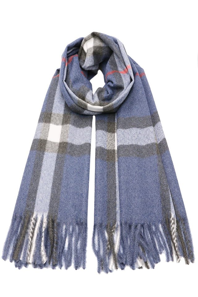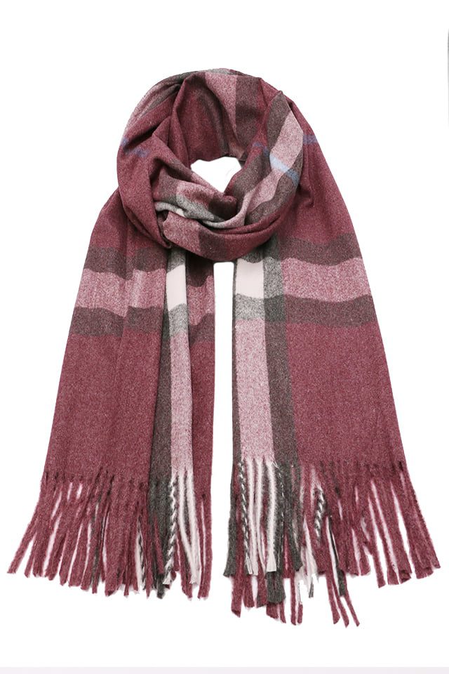 Fular tip sal pentru dama, stil casual pentru sezonul rece, in carouri, cu franjuri, din viscoza moale la atingere, ROCS B006