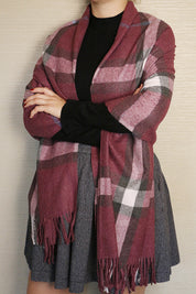 Fular sau sal pentru dama, in carouri, marginile sunt decorate cu franjuri pufoase, confectionat din material foarte moale si fin la atingere.