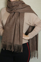 Fular tip sal pentru dama, cu franjuri, din viscoza fina, culoare uniton, sezon toamna iarna, ROCS B040